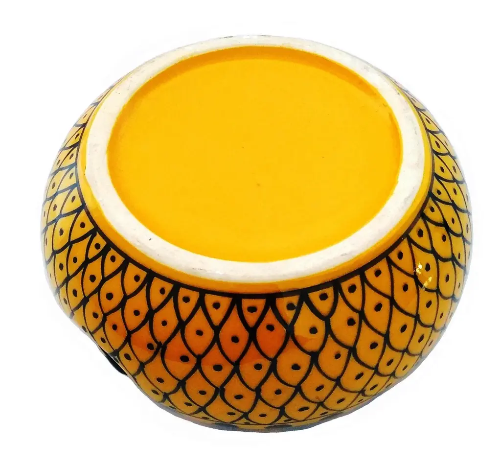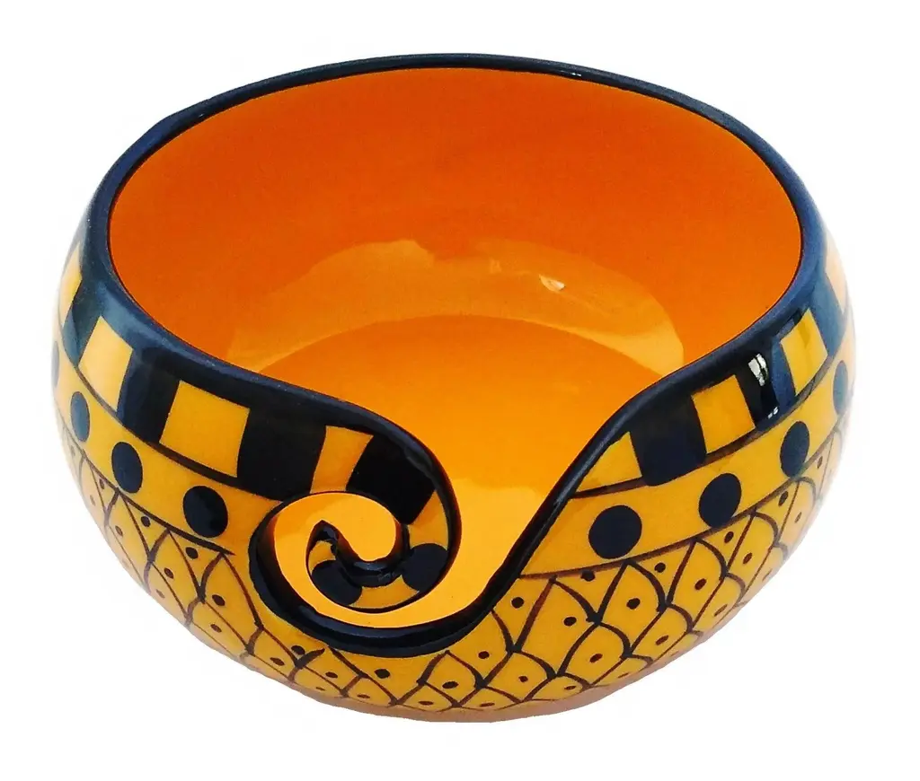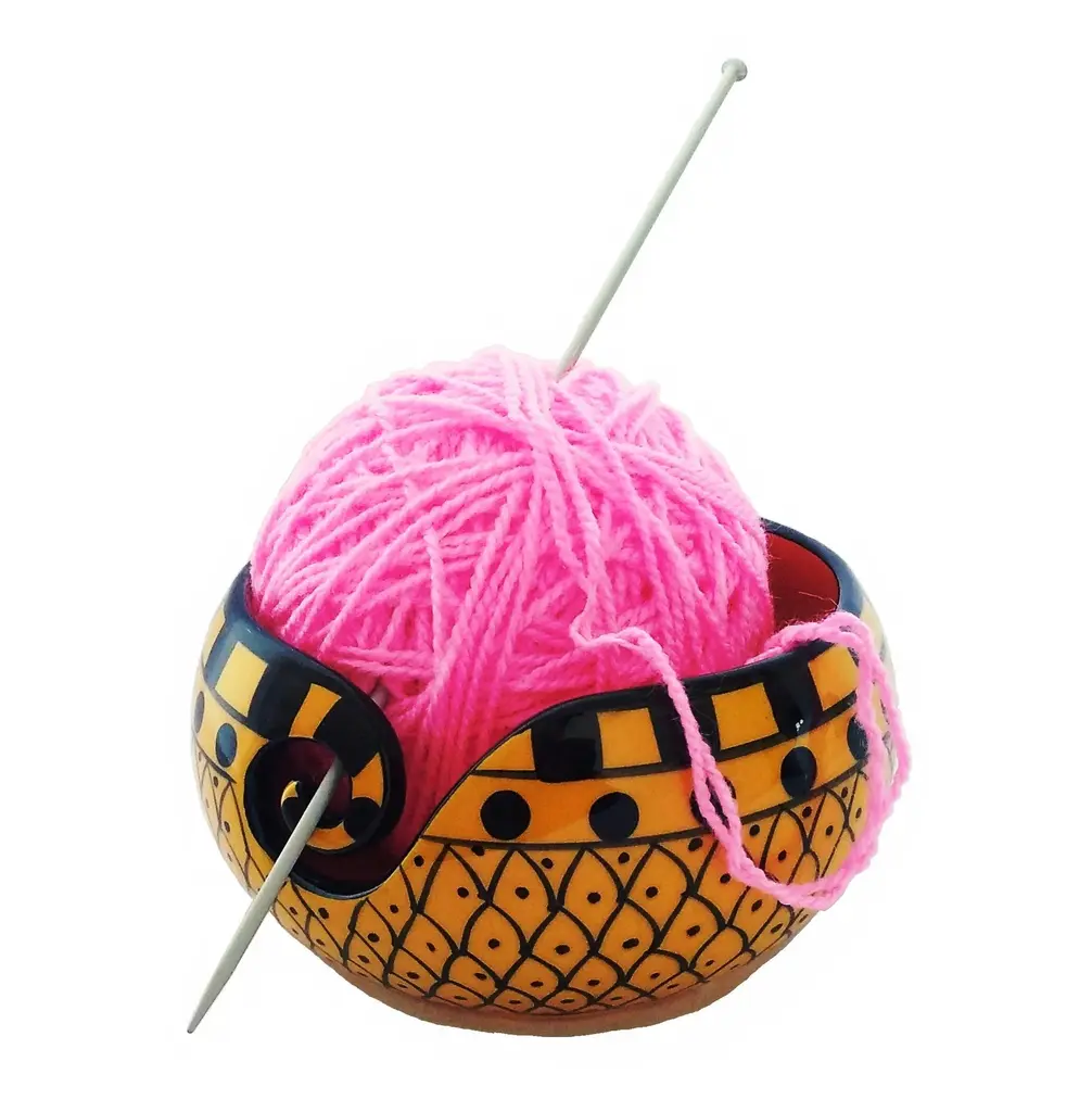 Boho Chic Handcrafted Curry Yellow Ceramic Knitting Yarn Bowl Holder