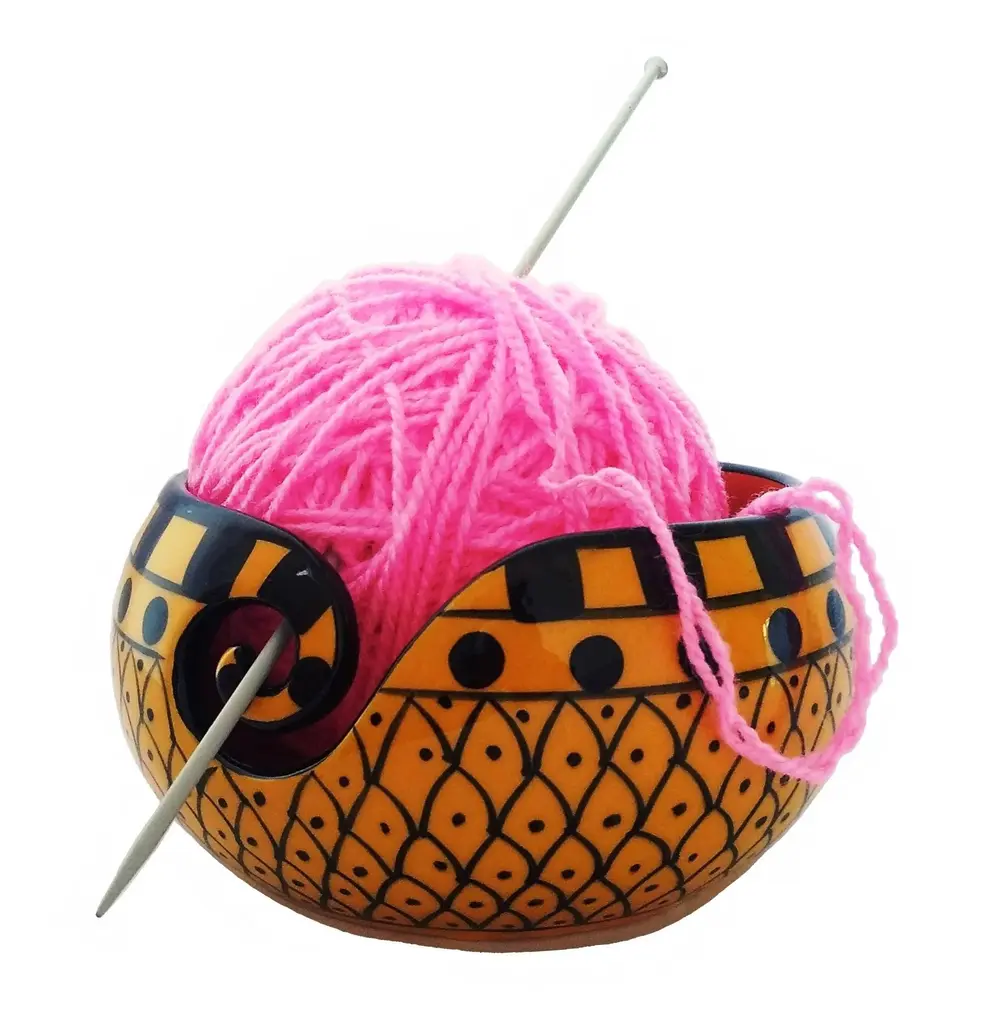 Make knitting adorable with this decorative beautiful Multi Layered Curry Yellow design Bowl remind us of the beauty of nature. A great way to keep your yarn clean and tangle-free, Perfect for storing your yarn & knitting needles when you're not working. Perfect size for sitting on a table or at your feet - measures 6" in diameter, I keep it in the living room and it looks nice. A thoughtful and delightful gift for the knitter in your life, The perfect gift for any knitting or crochet enthusiast! Size: 16X16X8 cm, Weight: 720 gm.