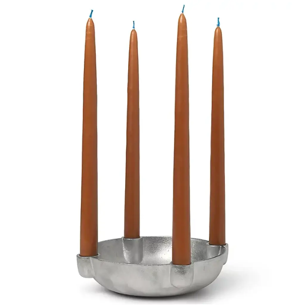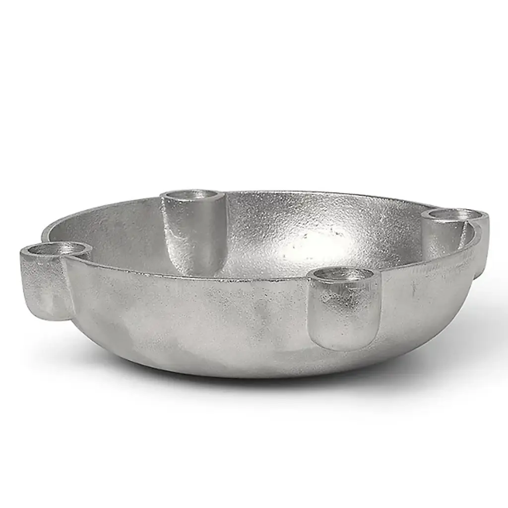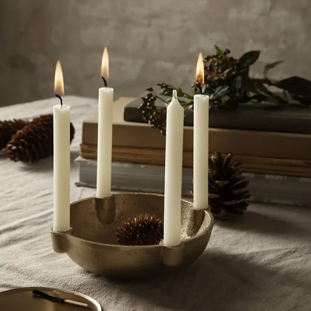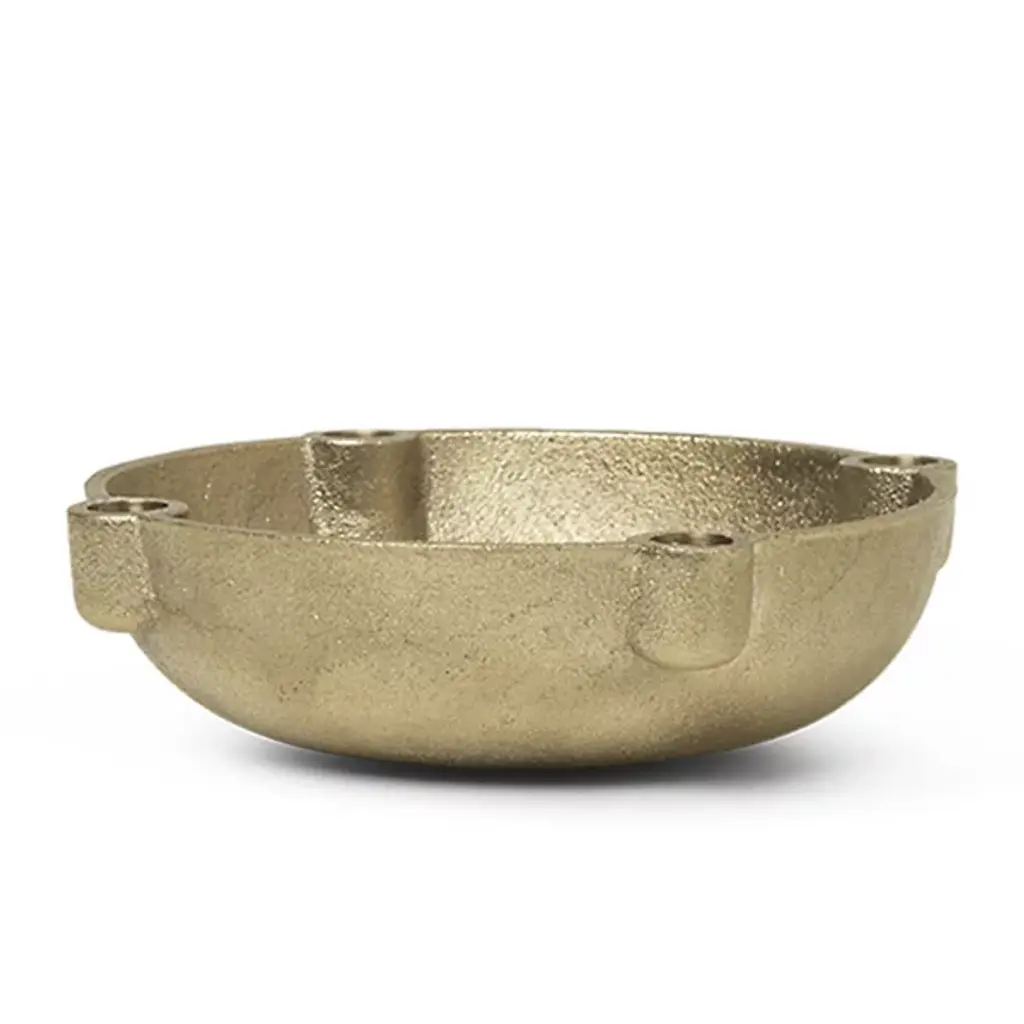 The Bowl Candle Holder from Ferm Living exemplifies sustainable design through its 100% recycled aluminum construction. The casting process gives each piece subtle surface characteristics while maintaining the essential bowl form. Designed to hold small candles, this holder balances safety with style through its considered proportions. The central area serves as a display space for seasonal decorative objects. The holder’s versatile design allows it to work individually or as part of a grouped arrangement.