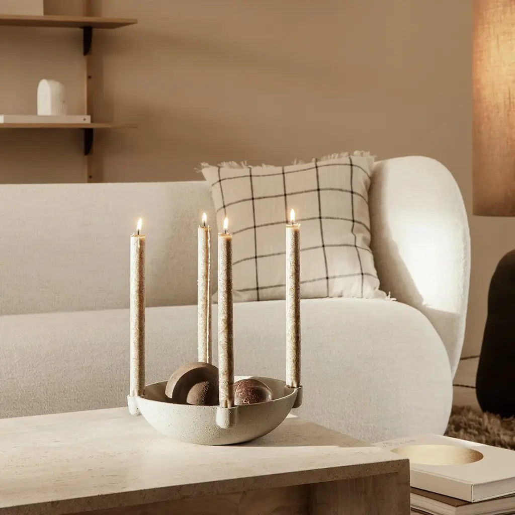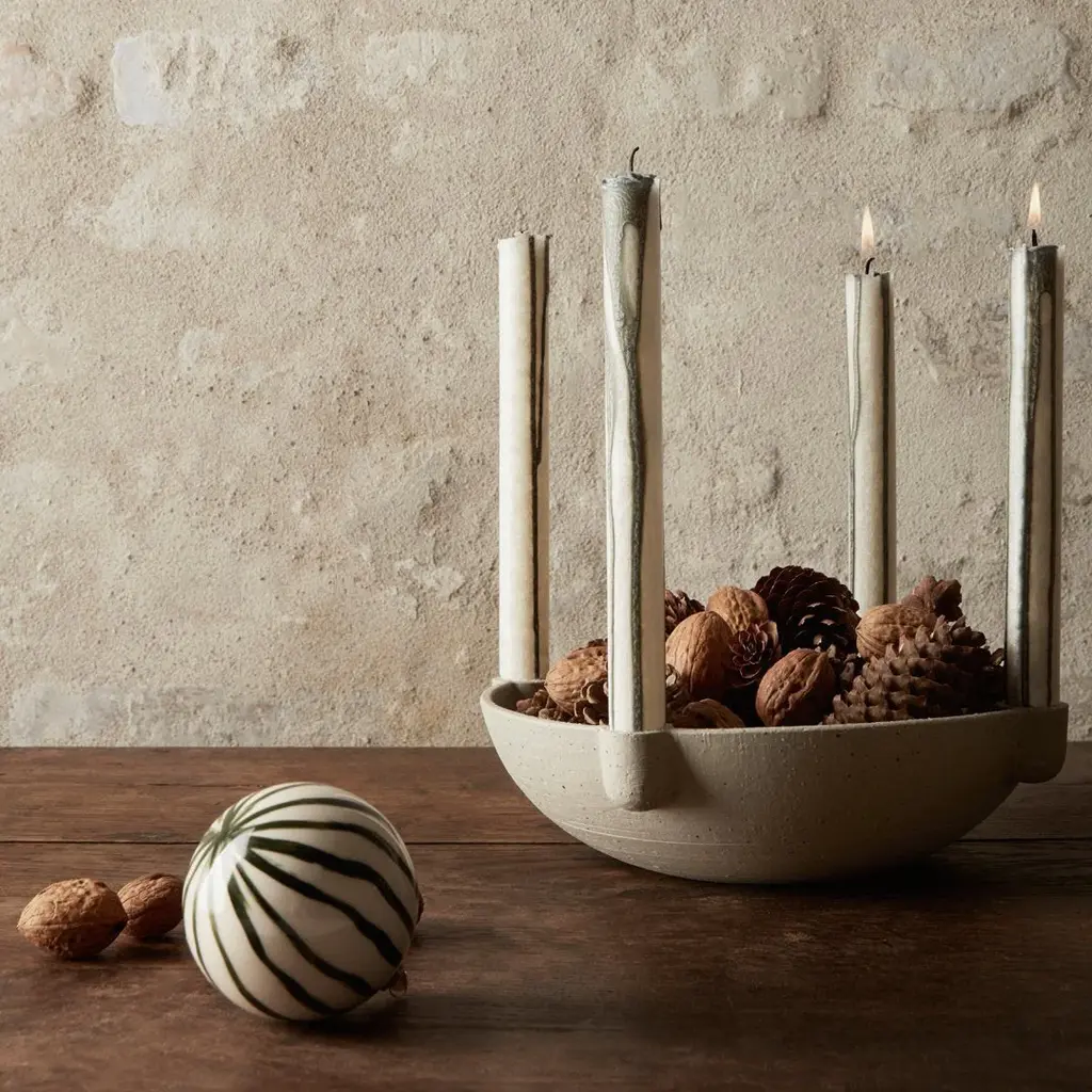 The Bowl Candle Holder is at once a decorative and multifunctional piece. The candle holder’s solid brass form makes a simple yet elegant impression with a set of lighted candles. You can use the centre of the bowl to store your favorite small decorative items of the season.