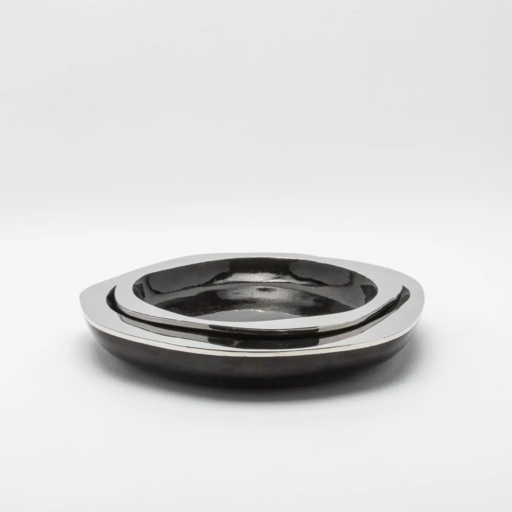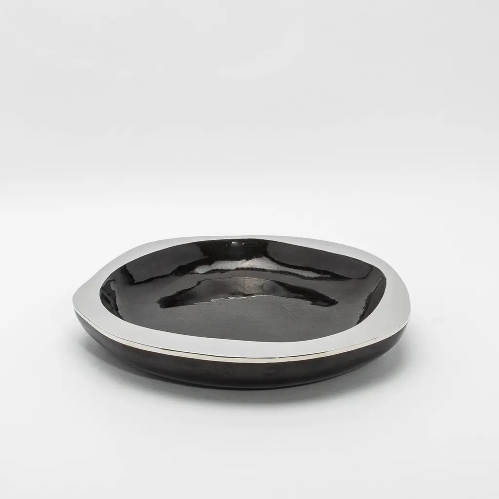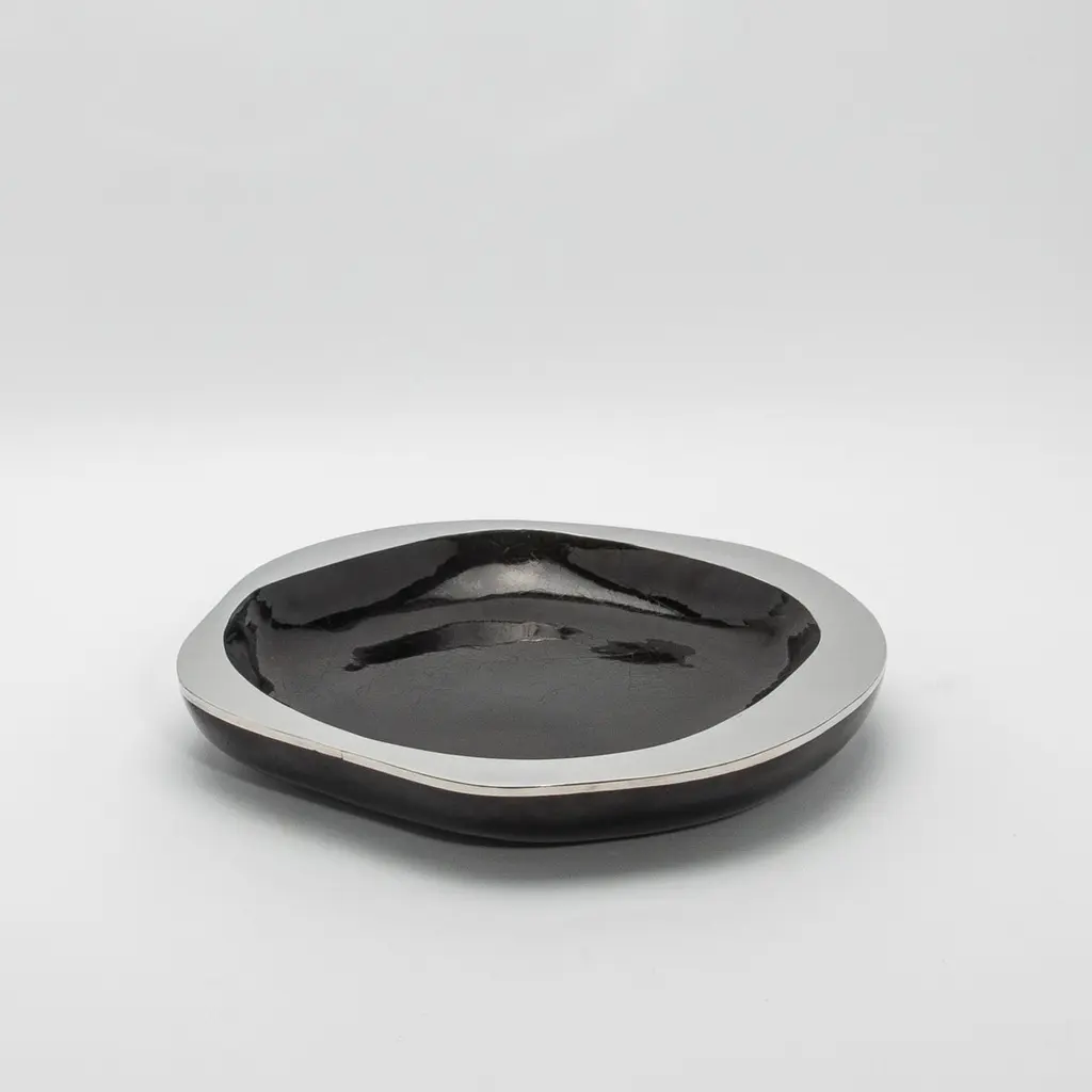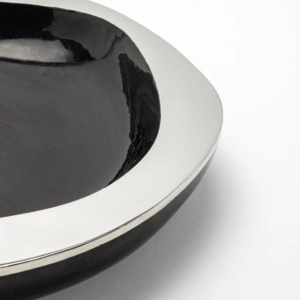 The Lily Bowl in black shell with stainless steel details by R&Y Augousti is an exquisite example of refined craftsmanship. Meticulously handcrafted, this bowl marries the organic beauty of black shell with the sleek, modern touch of polished stainless steel. Its design is sculptural yet functional, with a smooth, undulating form that draws the eye to the rich, deep texture of the shell interior, which contrasts beautifully with the mirror-like edge of stainless steel. This bowl comes in different finishes and sizes. This one is size Medium.This item is on display in our LA showroomColor variants may occur on the stingray and other exotic finishesClean with soft dry clothAbout R&Y AUGOUSTI:R&Y Augousti, created by the visionary husband-and-wife duo Ria and Yiouri Augousti, epitomizes the pinnacle of luxurious, globally inspired design. Since its inception in Paris in 1989, the brand has become synonymous with opulence, distinguishing itself through the masterful integration of shagreen with brass and other exotic materials. Each piece in their Art Deco-inspired collection is a testament to unparalleled craftsmanship, meticulously handcrafted by the finest artisans in the Philippines, ensuring that every creation is a unique masterpiece.Ria, hailing from Manila, and Yiouri, from Cyprus, share an exquisite passion for revivalist design, which has propelled R&Y Augousti to the forefront of luxury interiors. Their innovative use of materials, particularly the revival of shagreen, has set new standards in elegance and sophistication. The natural color variations on stingray and other exotic finishes further enhance the authenticity and bespoke nature of their designs.Today, R&Y Augousti’s collections grace the most exclusive showrooms in Paris, New York, and Los Angeles at the Pacific Design Center's MOGUL, continuing to redefine the essence of timeless luxury. Their work is not merely furniture; it is a celebration of art, craftsmanship, and the ultimate in refined living.