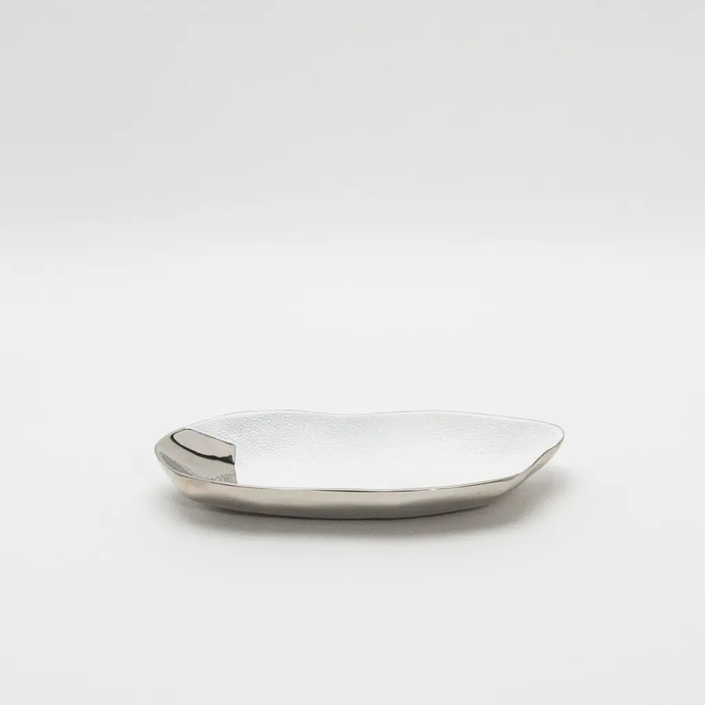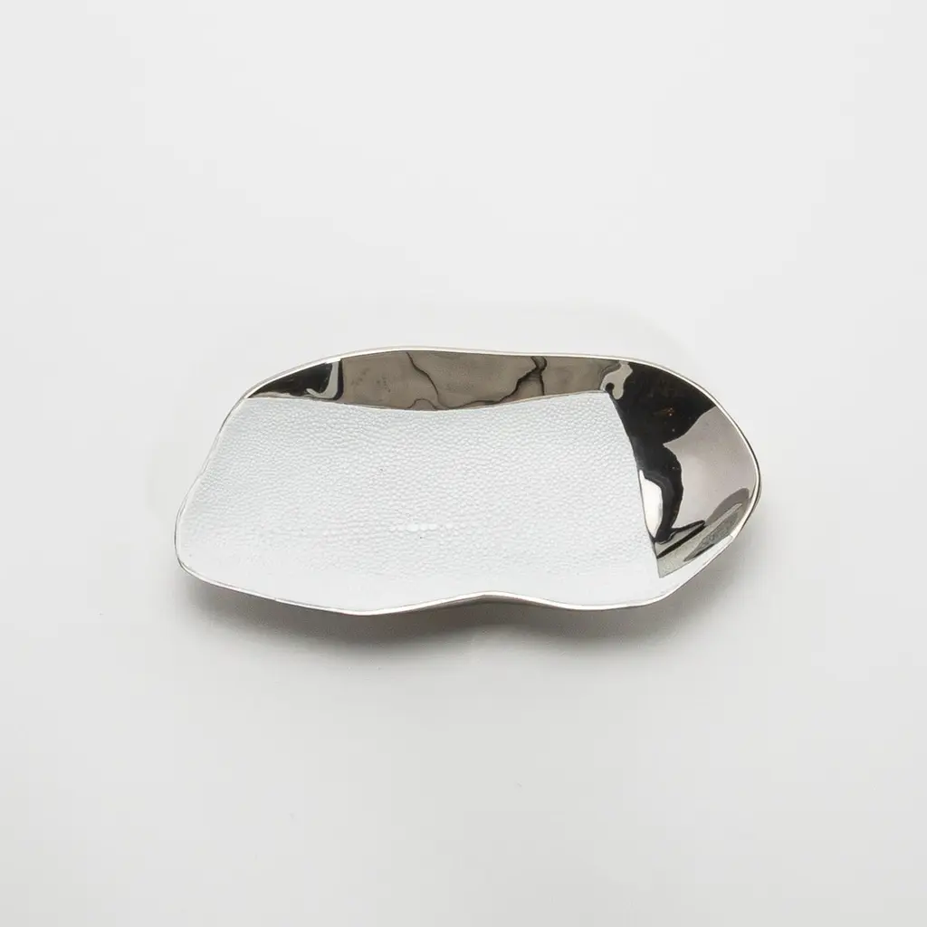 The Chital bowl by Kifu Paris is a stunning masterpiece, crafted from premium materials that exude sophistication and refinement. This hand-crafted bowl combines the elegance of white shagreen with the sleek, mirror-like finish of polished stainless steel. The smooth curves of the bowl, along with its organic form, offer a sense of fluidity and modern luxury, making it a versatile decorative piece or a functional accessory for any high-end space. The contrast between the textured shagreen and the gleaming metal creates an eye-catching interplay of materials that feels both timeless and contemporary. This exquisite bowl exemplifies the exceptional craftsmanship and attention to detail synonymous with Kifu Paris, a brand renowned for its innovative use of natural materials in modern design.This item is on display in our LA showroomKeep away from direct sunlightColor variants may occur on the stingray and other exotic finishesClean with soft dry clothAbout KIFU PARIS:Kifu Augousti is an up-and-coming creator of modern furnishings, celebrated for her ability to blend the timeless elegance of the Art Deco tradition with a bold, contemporary flair. The daughter of renowned designers Ria and Yiouri Augousti, known as R&Y Augousti, Kifu has inherited a rich legacy while carving out her own distinctive style. Offbeat materials, sinuous curves, and wild patterns have become the hallmarks of her designs, cultivated from her early years in Paris to her current creative haven in Manila.Each piece in Kifu’s collection, whether furniture or accessories, is meticulously handcrafted by the finest artisans in the Philippines. These artisans, known for their unparalleled expertise, use only the best natural materials and apply intricate, hand-painted techniques, ensuring every item is a masterpiece. Available in exclusive showrooms in Paris, New York, and Los Angeles at the Pacific Design Center's MOGUL, her creations—ranging from sculptural benches with commanding bronze frames to exquisitely detailed boxes, trays and vases—are not just furnishings, but timeless treasures that represent the pinnacle of luxury and innovative design.