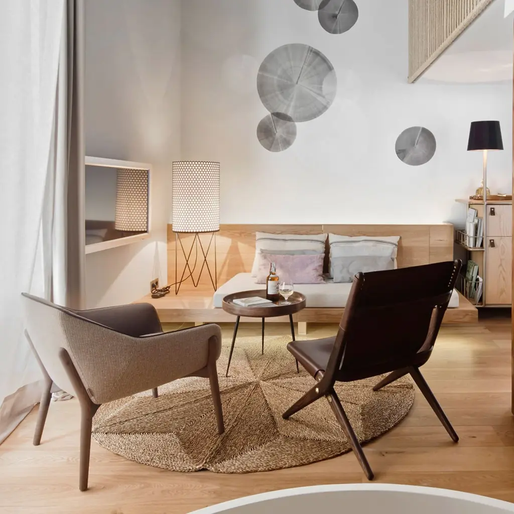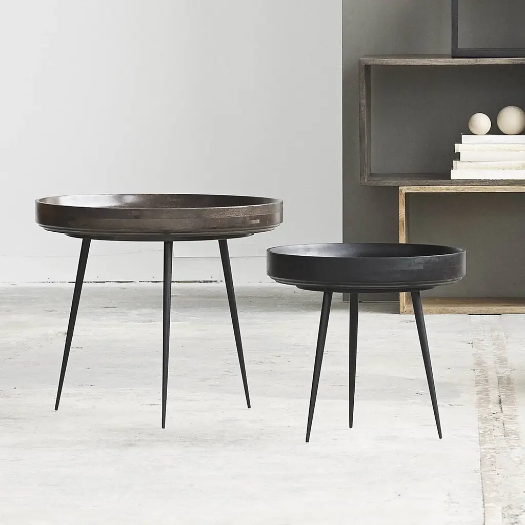 Tray chic. Mater's Bowl Table limns the form of wooden lacquer trays customarily found in India for this minimalist design by Ayush Kasliwal. Crafted in sustainably grown and harvested mango wood, the tabletop is turned manually on a lathe, showcasing the skill of traditional Kharadi woodworkers. Finished with lead-free and water-based lacquer to also cut down on environmental impact, the variably sized table is emblematic of Danish brand Mater's commitment to sustainable, eco-conscious methods paired with a gorgeously refined aesthetic.