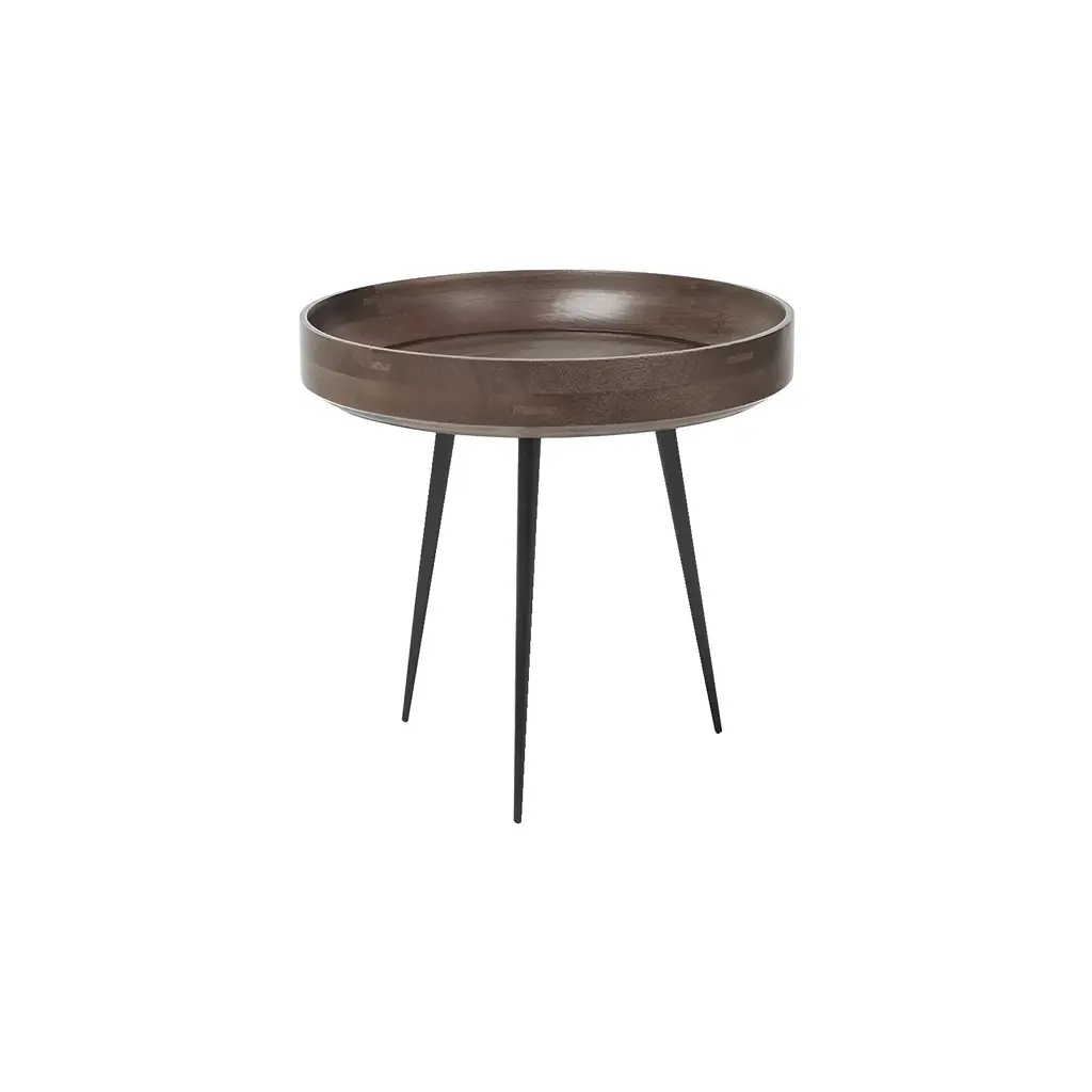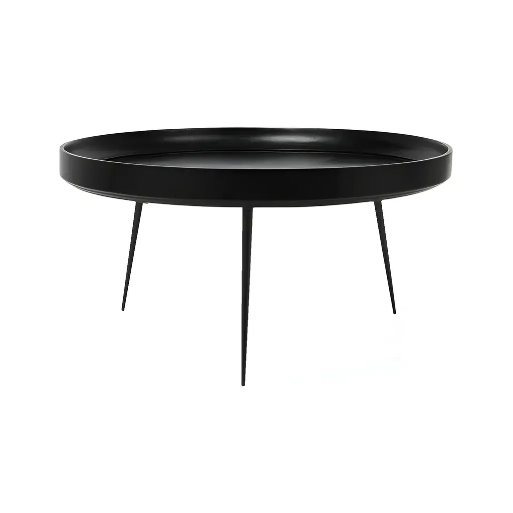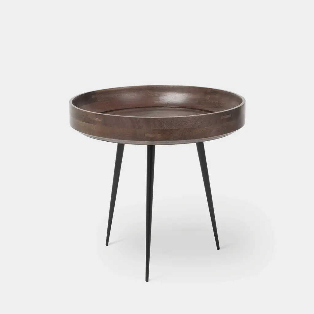 Tray chic. Mater's Bowl Table limns the form of wooden lacquer trays customarily found in India for this minimalist design by Ayush Kasliwal. Crafted in sustainably grown and harvested mango wood, the tabletop is turned manually on a lathe, showcasing the skill of traditional Kharadi woodworkers. Finished with lead-free and water-based lacquer to also cut down on environmental impact, the variably sized table is emblematic of Danish brand Mater's commitment to sustainable, eco-conscious methods paired with a gorgeously refined aesthetic.