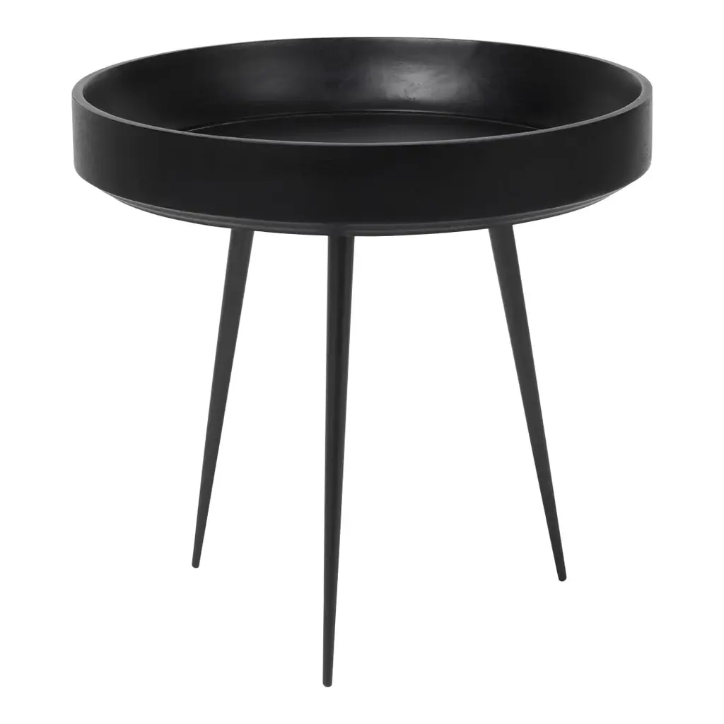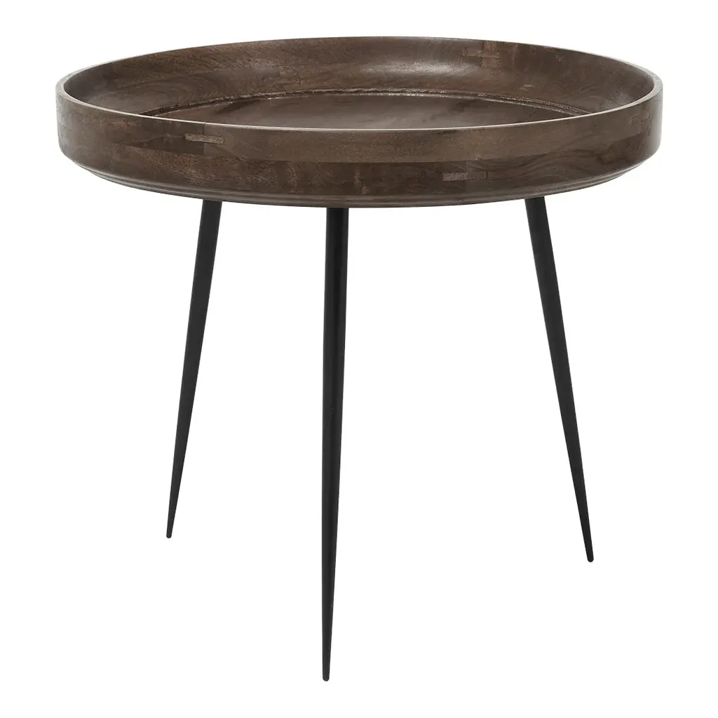 The Bowl Table has a top made from the wood of the mango fruit tree. Mango trees are grown and tended, and once the productive life of the tree is over, it is cut down and another one is planted. Incidentally, mango, as a fruit is widely consumed across the country hence the wood is plentiful. It is turned manually on the lathe, showcasing the skill of the "kharadi" or the woodturning community, thereby supporting local skills. The legs are made of mild steel, machined out of rods. The finishing is done with lead free water based PU lacquers, thereby respecting the local environment.