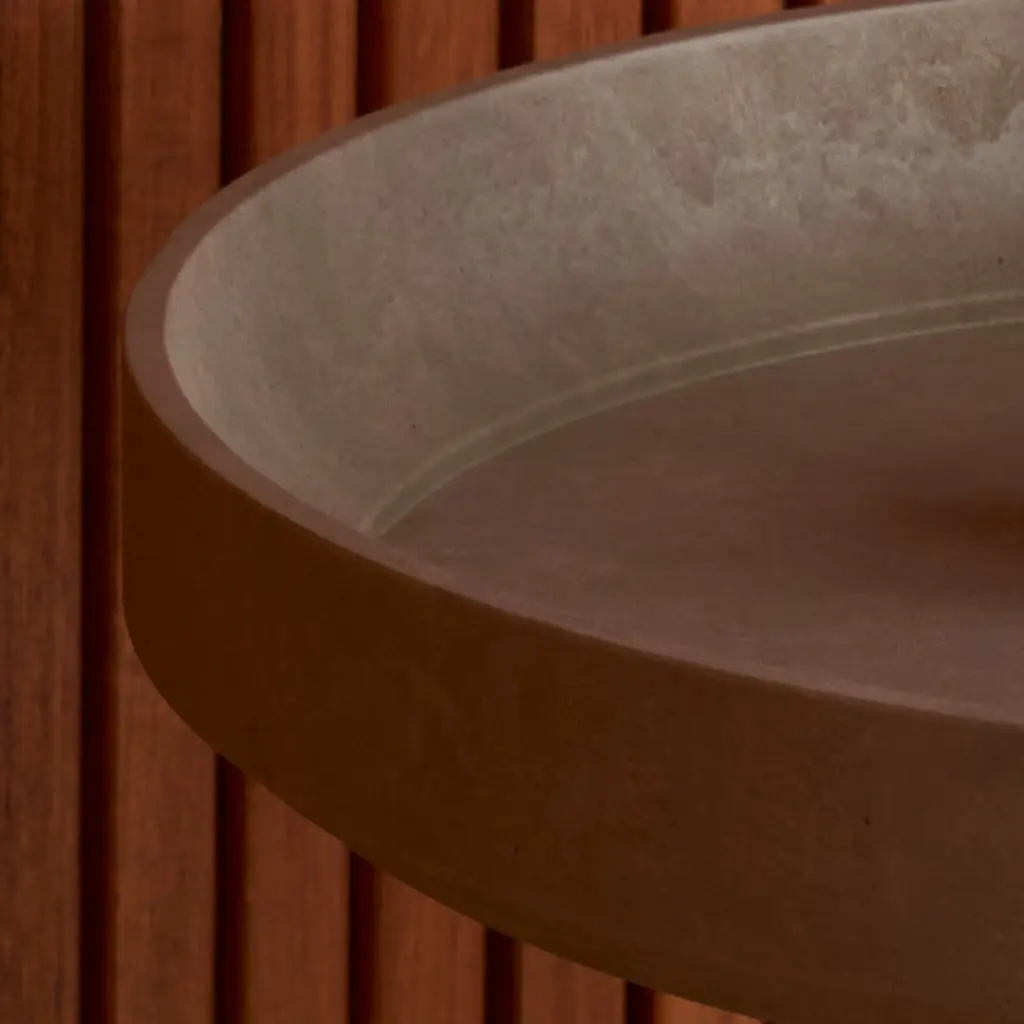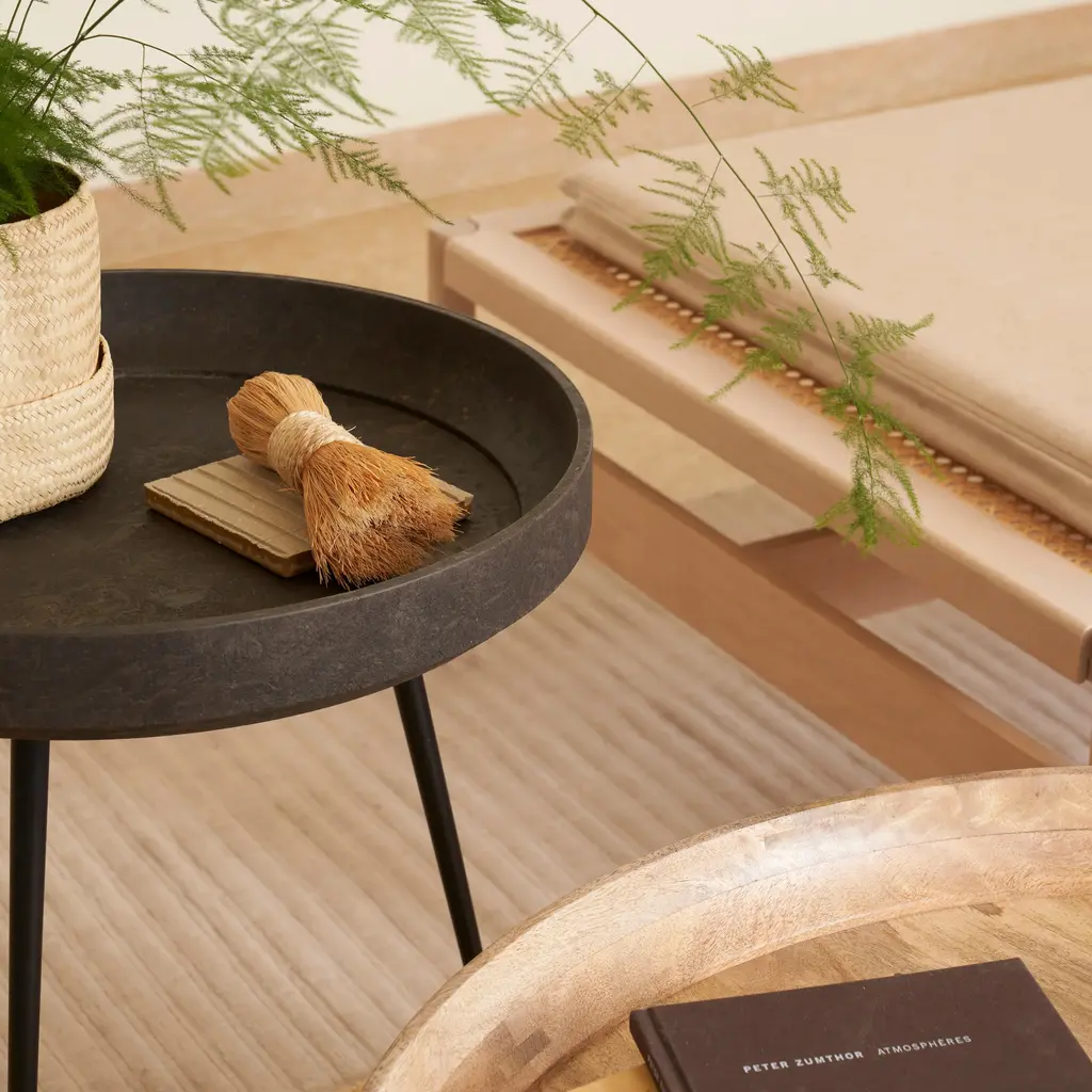 From Mater’s Circular Materials grouping, Bowl Table: Waste Edition employs an innovative technology to produce the material for its sustainable construction. Designer Ayush Kasliwal fashions the rimmed round tabletop in 2 versions: Coffee Waste, which combines upcycled shell leavings mixed with recycled industrial plastic waste, or Wood Waste, which mixes excess sawdust with the recycled plastic. Finally, the steel table legs are made of 20% upcycled metal with a black powder-coated finish.