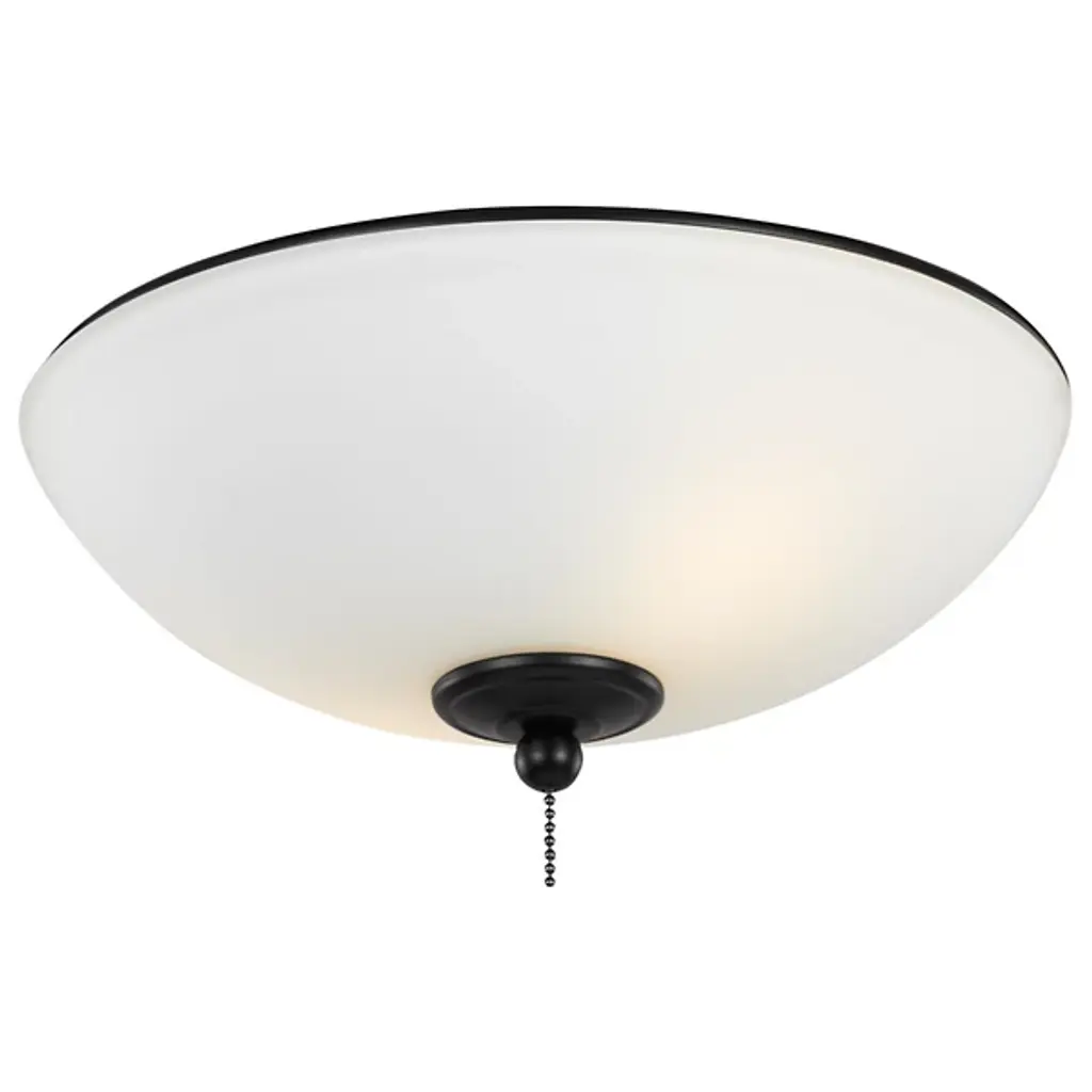Bring brightness to compatible Visual Comfort Fan fixtures, formerly known as Monte Carlo Fan, with the simple, swooping lines of the Bowl Universal Fan Light Kit from Visual Comfort Fan. A glass dome set over a steel under-structure with wet-listed lamping emplaced under it, it uses a central finial to hold it in place, transmitting a pull chain below to control the lamping. The lamping is easily blunted by the translucent glass, transmitting a stately warmth around the fixture in all directions.