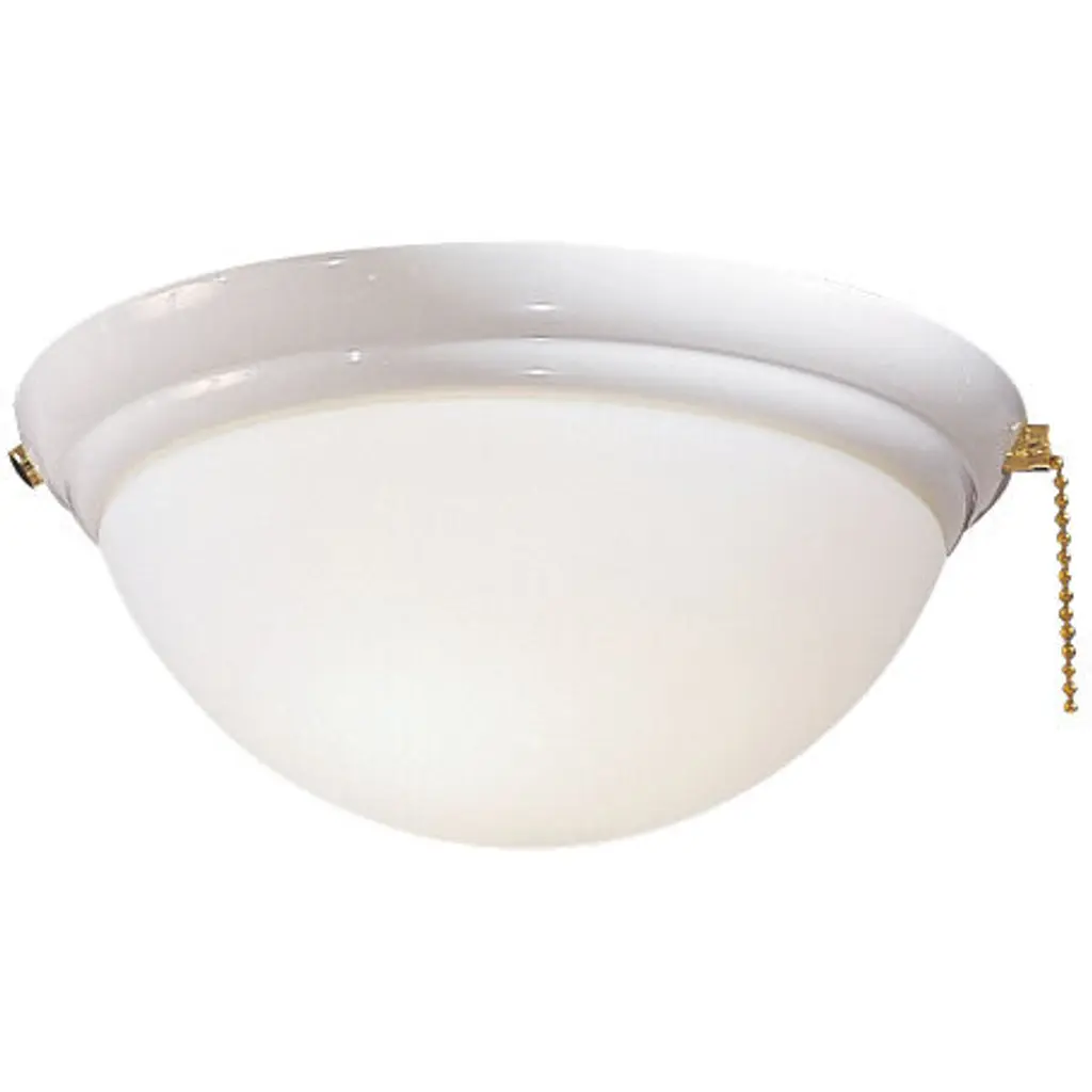 Bring brightness to compatible Visual Comfort Fan fixtures, formerly known as Monte Carlo Fan, with the simple, swooping lines of the Bowl Universal Fan Light Kit from Visual Comfort Fan. A glass dome set over a steel under-structure with wet-listed lamping emplaced under it, it uses a central finial to hold it in place, transmitting a pull chain below to control the lamping. The lamping is easily blunted by the translucent glass, transmitting a stately warmth around the fixture in all directions.