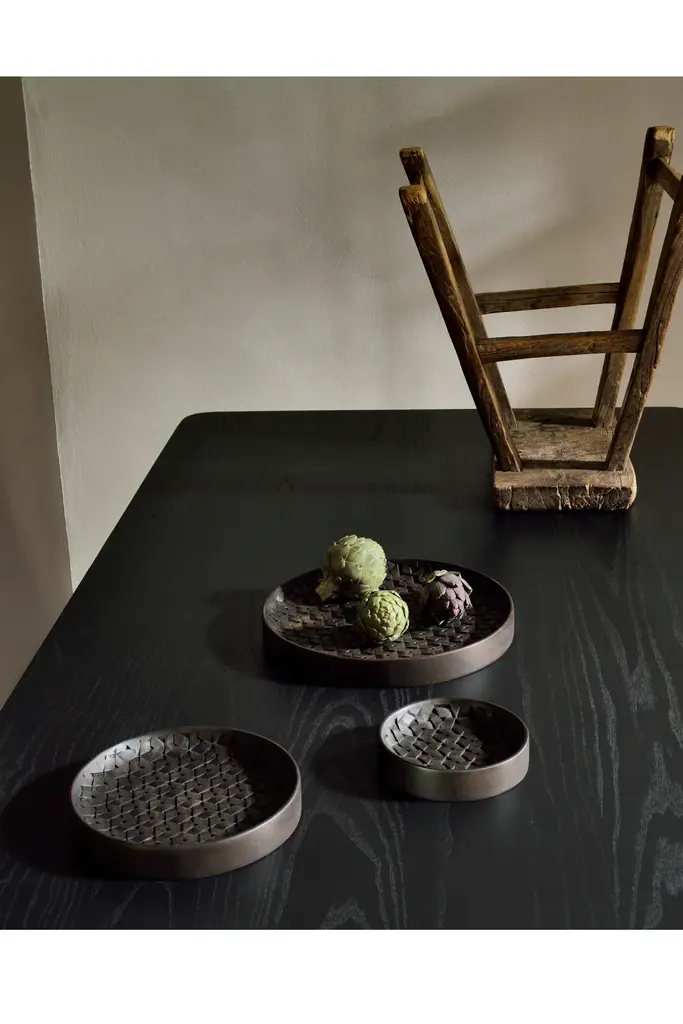 Enhance your dining and kitchen space with the Brown Mahogany Bowl Set (3) by Ethnicraft. These exquisite, circular Tampa bowls are not only functional but also serve as beautiful decorative pieces. Each piece is fully hand-carved, showcasing the skillful artistry of our talented artisans. Designed for use with dry food, this set is ideal for displaying fruits, nuts, or other dry delicacies.