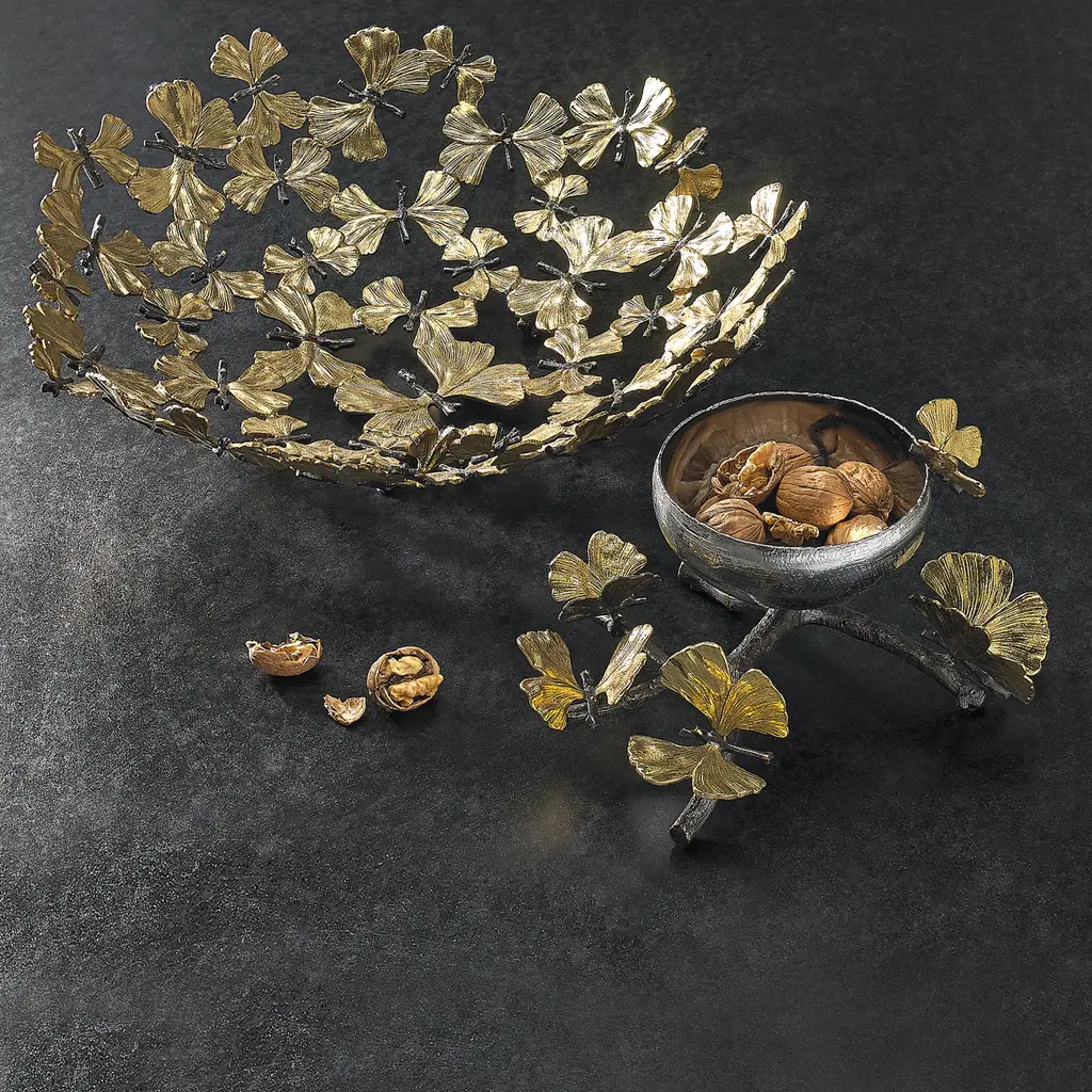 Known for its delicate leaves that resemble butterflies at rest before taking flight, the gingko biloba tree was the muse behind Michael Aram's sculptural Butterfly Ginkgo Collection. Each piece is rendered by hand in solid bronze and nickelplate with artfully etched details.
