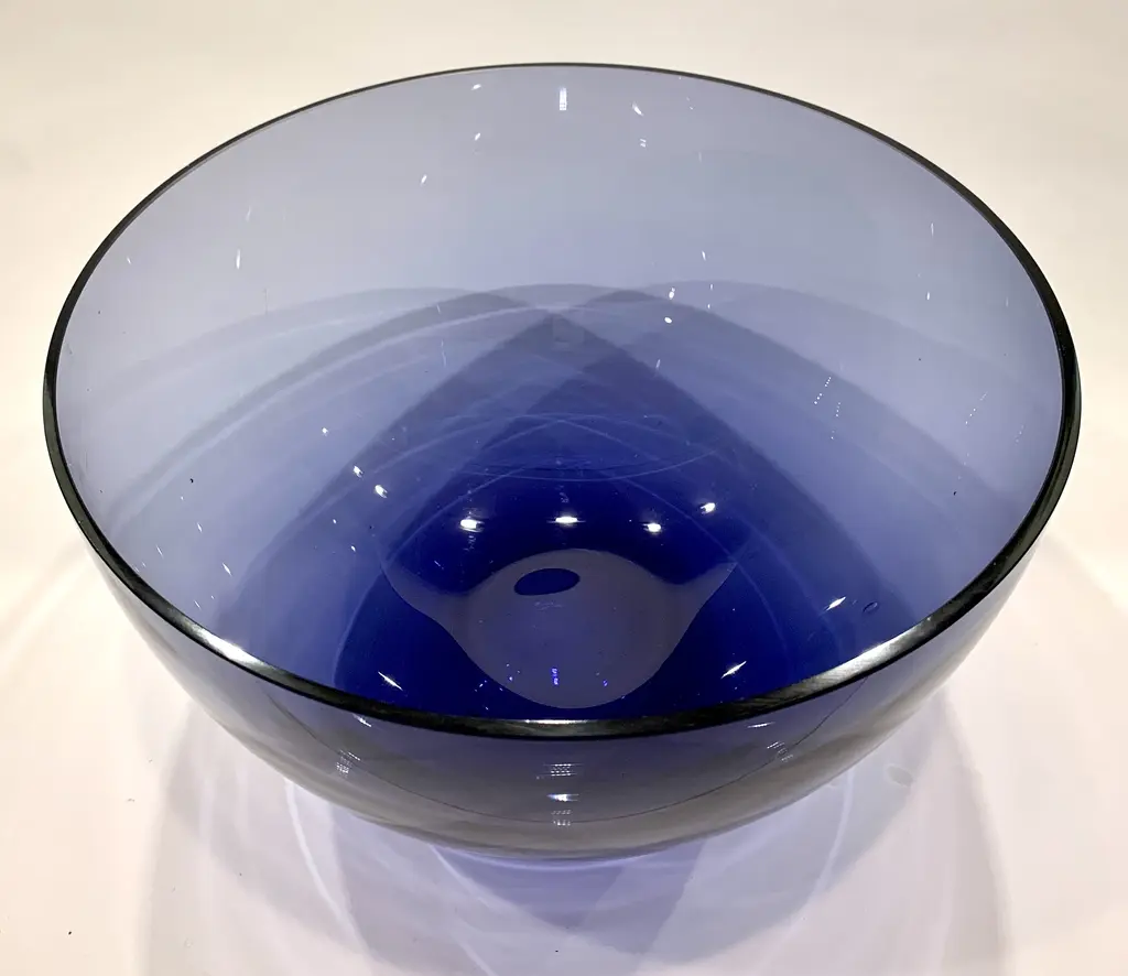 C. 1980s large crystal purple/blue bowl. Fades light to dark from top to base. Excellent vintage condition.