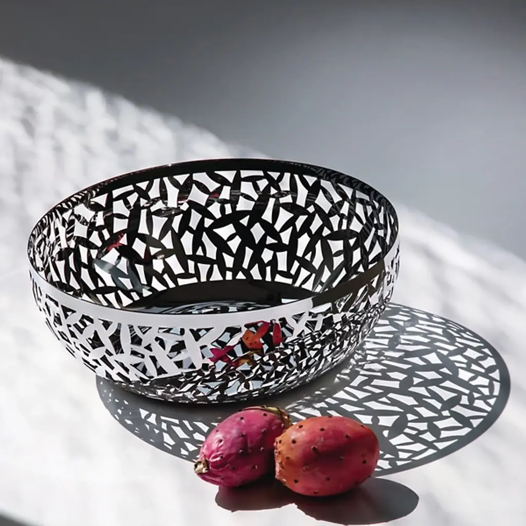 The Alessi Cactus! Fruit Bowl makes a beautiful centerpiece, its laser-cut stainless steel designed by Marta Sansoni. Part of a larger iconic collection, the Cactus! Fruit Bowl is easily complemented by the Cactus! Paper Napkin Holder and Condiment Set.