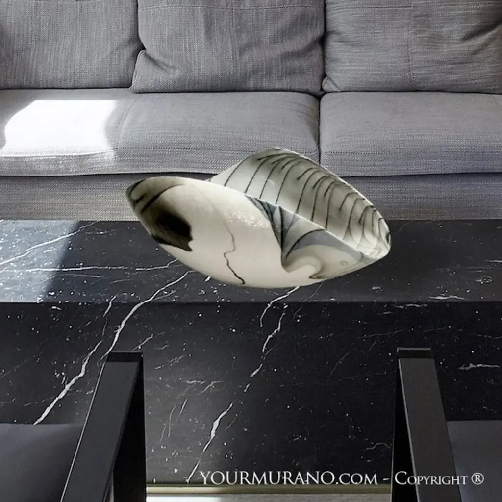 CAMPO is a modern Murano glass decorative folded bowl, realized with black details on grey glass. This unique creation will be perfect for any home space you want. Whether you are looking for an elegant object to decorate your dining room or for an original glass gift idea to impress someone, these decorative bowls in Venetian glass are an ideal solution. Find the perfect match for your home to create a one-of-a-kind interior design style to let anyone speechless! All products are handcrafted and prime production quality. Insubstantial variations in shape, size, colour, small imperfections and/or tiny air bubbles in the glass are not considered defects; they are inevitable and are typical of manual production of the glass and characterize handcrafted production.