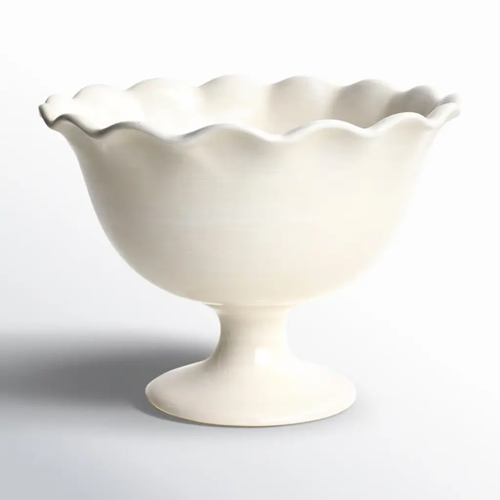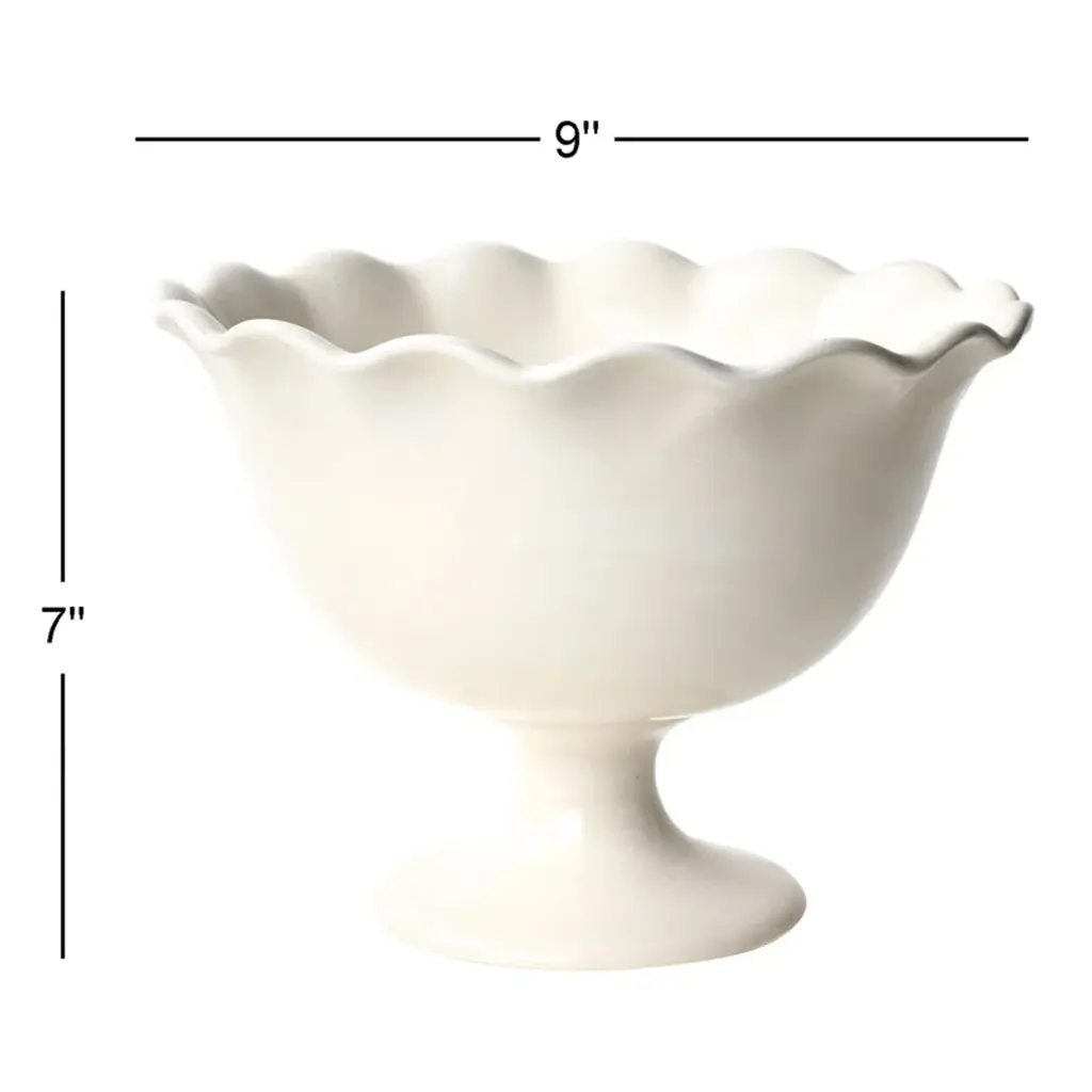 Savor time spent together over delicious meals you can enjoy in our Ruffle Footed Trifle Bowl. From everyday dining to a wedding registry must-have, this bowl goes from the oven to the table in a snap. This classic trifle bowl is a favorite for serving puddings, displaying fruit, or collecting spare change by the front door. This charming trifle bowl features a ruffled edge, our classic hand-painted brushstrokes, and a versatile style that lets you choose your favorite way to display it. Display this bowl on your dinner table as a center piece as part of your home dcor or serve a favorite dish in it. Show off your cooking and elevate your dcor with our Ruffle Footed Trifle Bowl.