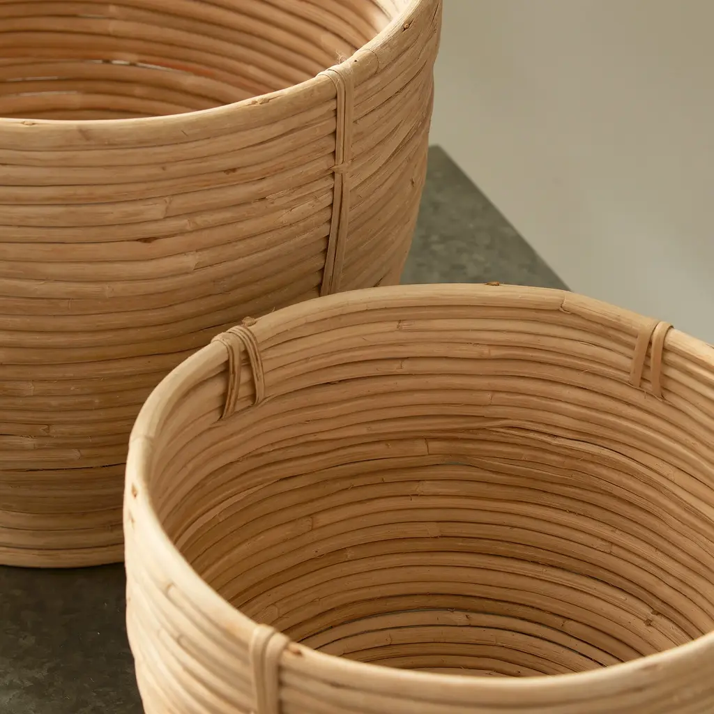 Cane Rattan Decorative Footed Bowls, Set Of 2