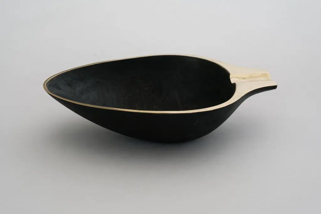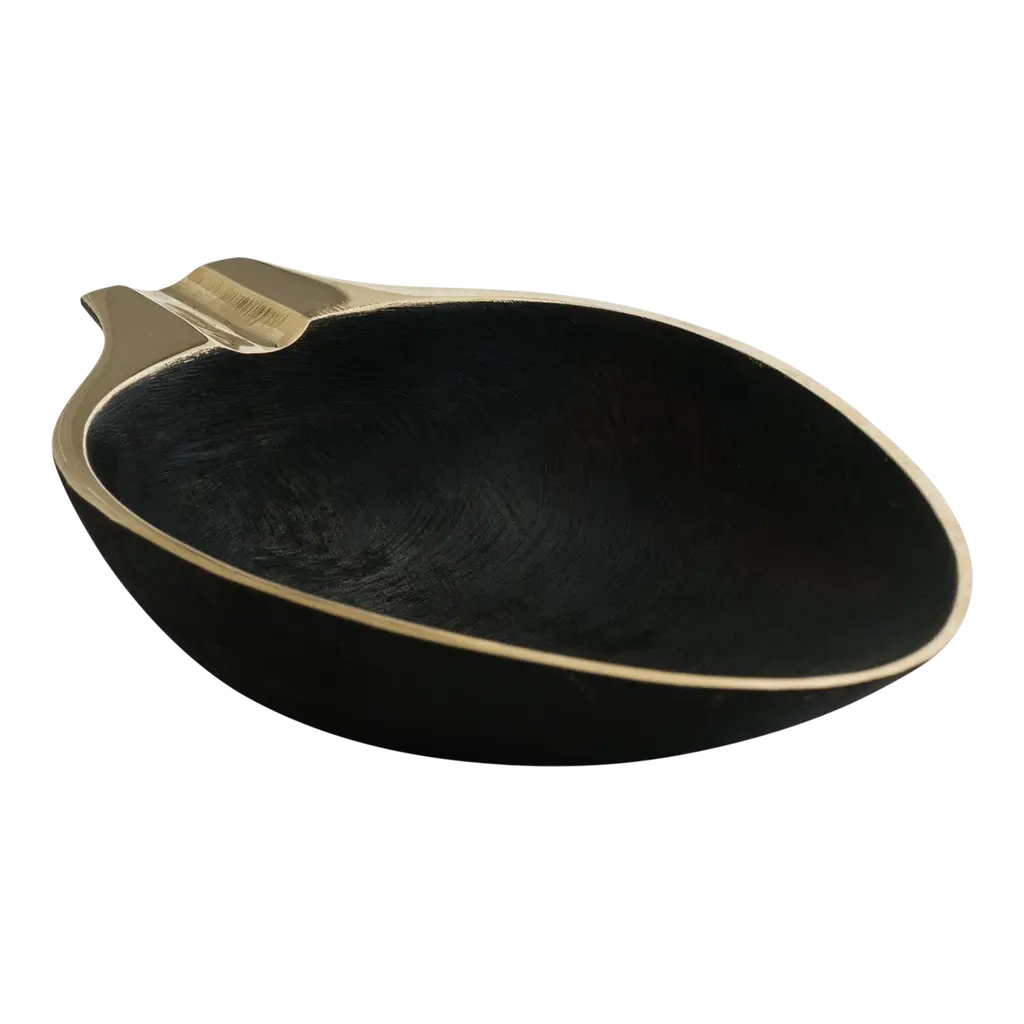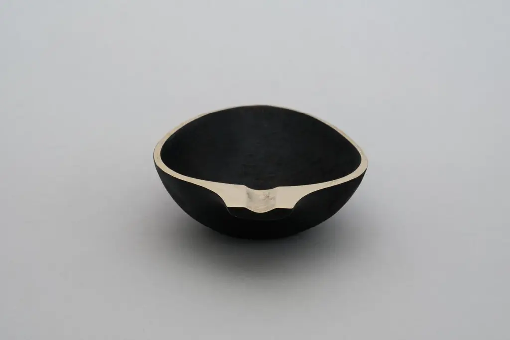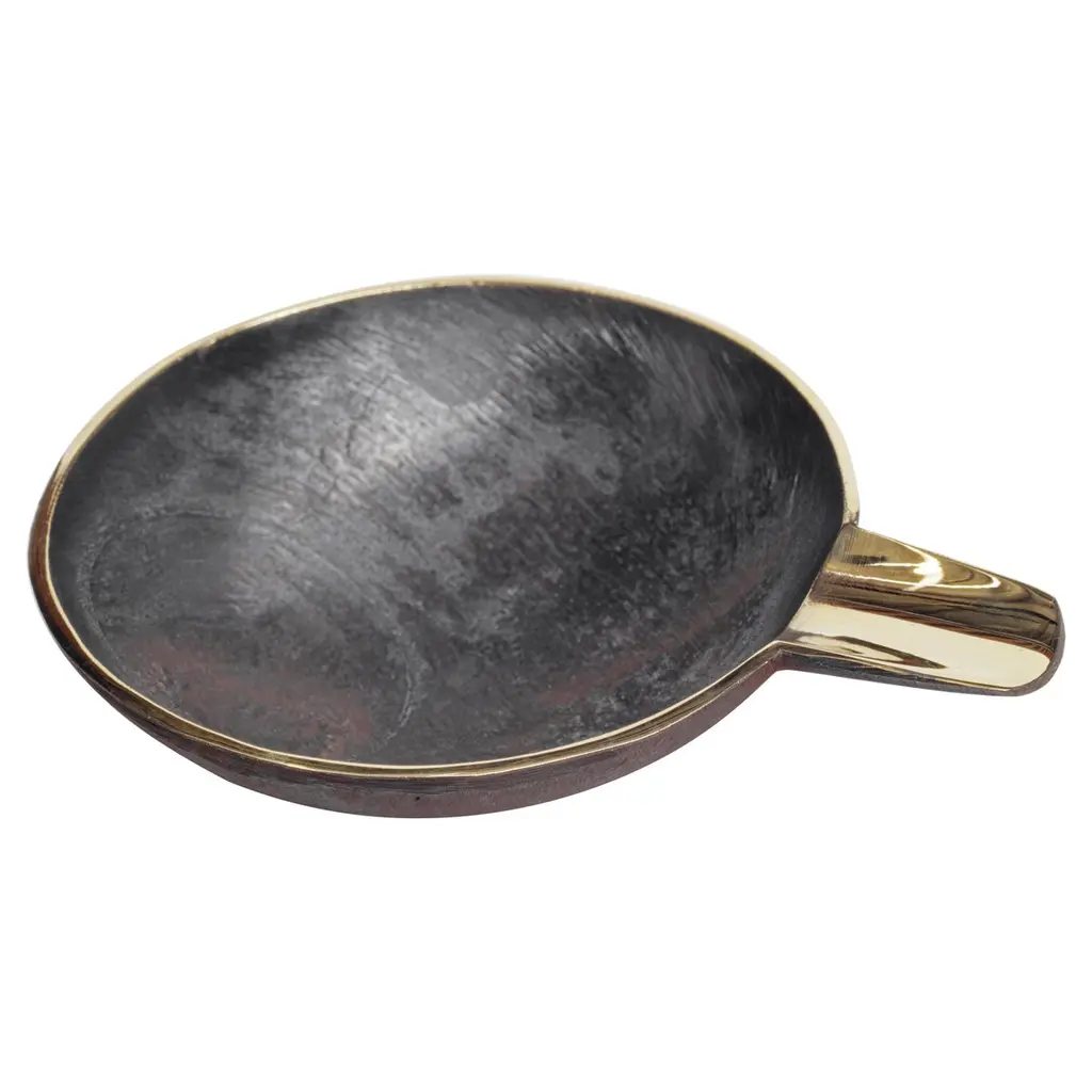 Carl Aubo¨ck Model #3548 patinated brass bowl. Designed in the 1950s, this incredibly refined and sculptural Viennese bowl is executed in polished and darkly patinated brass. Originally conceived as an ashtray, this decorative vessel can be used for a variety of purposes.Price is per item. One in stock ready to ship. Available in unlimited quantities. In-stock availability is subject to change at any time. Out of stock lead time 2-3 weeks or more. For time-sensitive orders, kindly inquire prior to purchasing.Produced by Carl Auböck IV in the original Auböck Werkstätte in the 7th district of Vienna using the same exacting standards, high-quality materials, original molds and techniques of his legendary grandfather. Auböck's design career was long and varied, reaching its pinnacle of prestige at the Triennale di Milano in 1954, where he received four gold medals in recognition of his iconic work.Please note that only one representative example of each item is shown in the images. Finish varies from item to item due to the handmade nature of their fabrication and due to the unique chemical patination process, which is meant to simulate 80-100 years of exposure of brass to sunlight.Made to order. All sales are final.