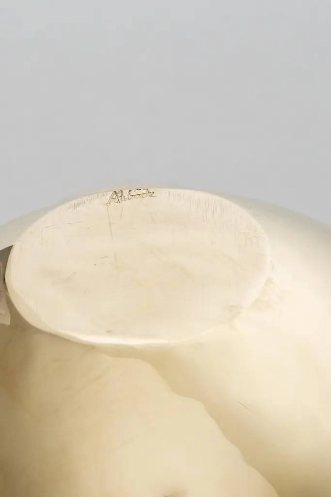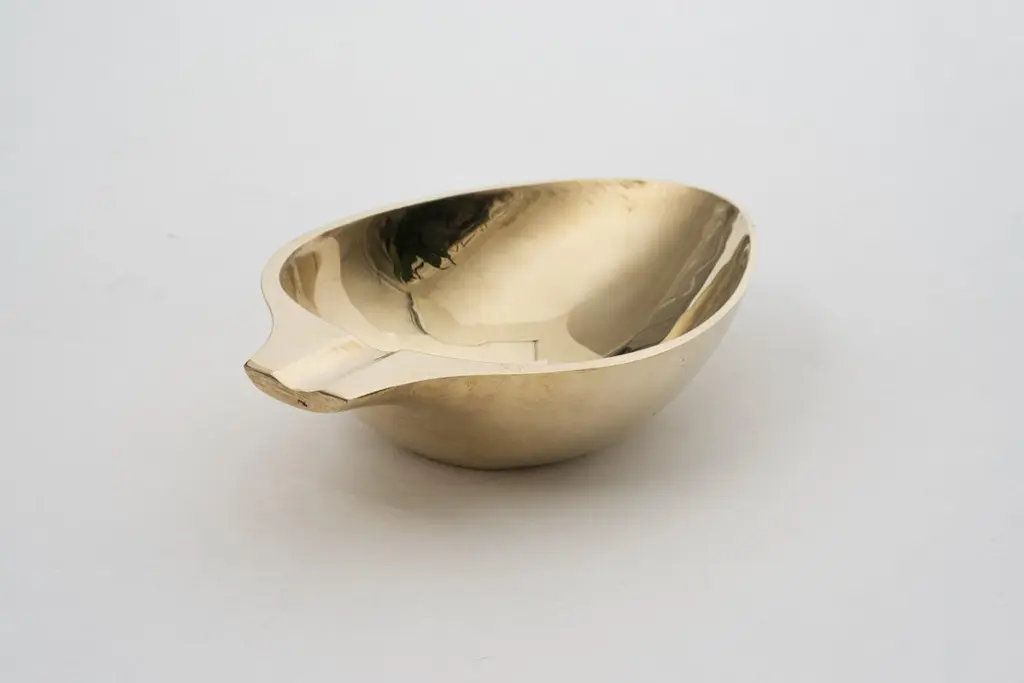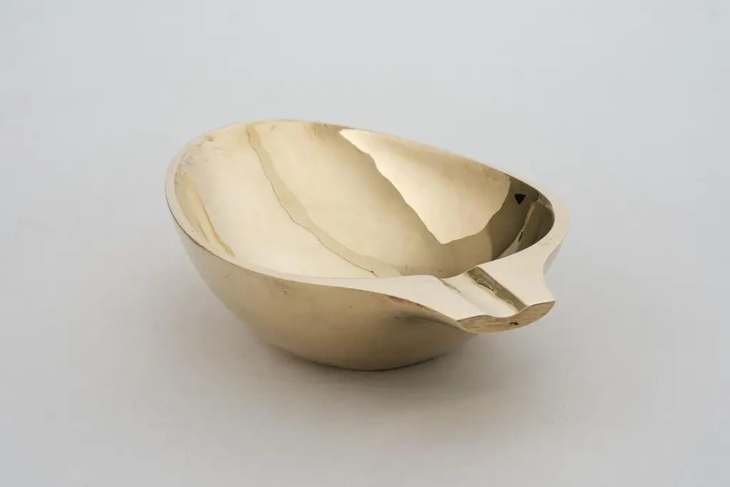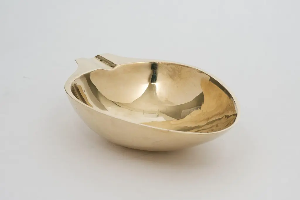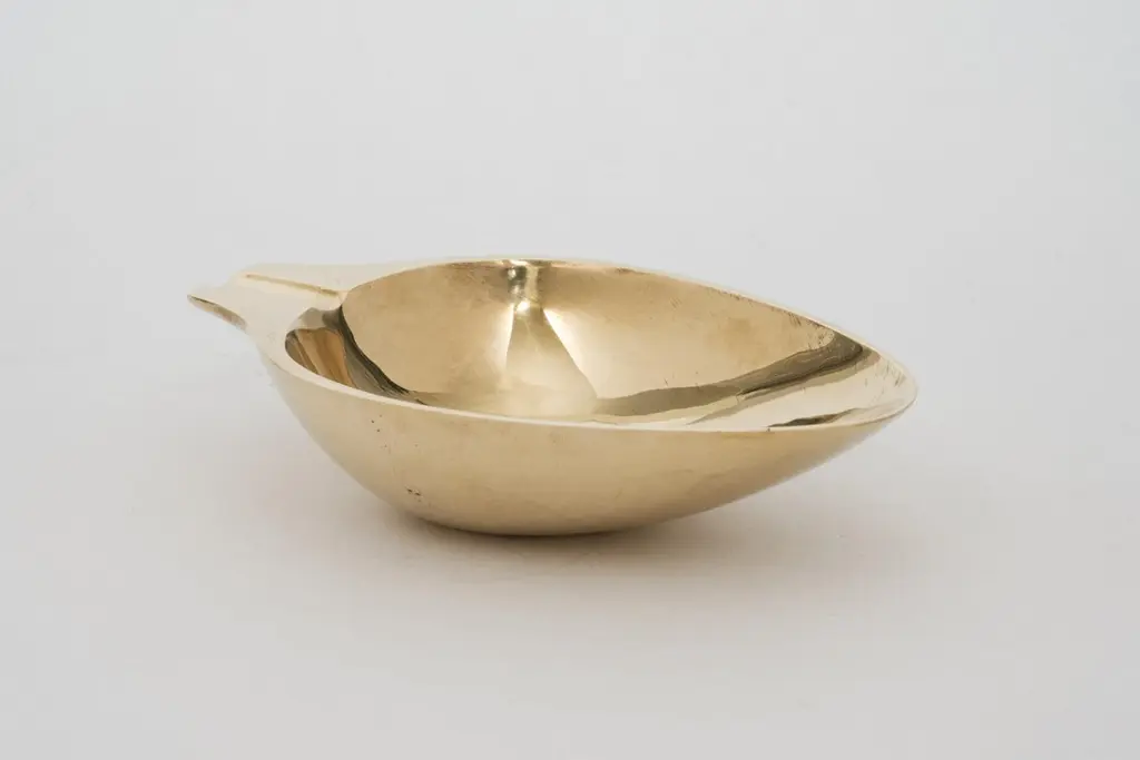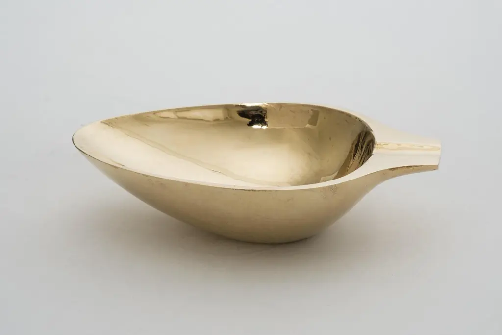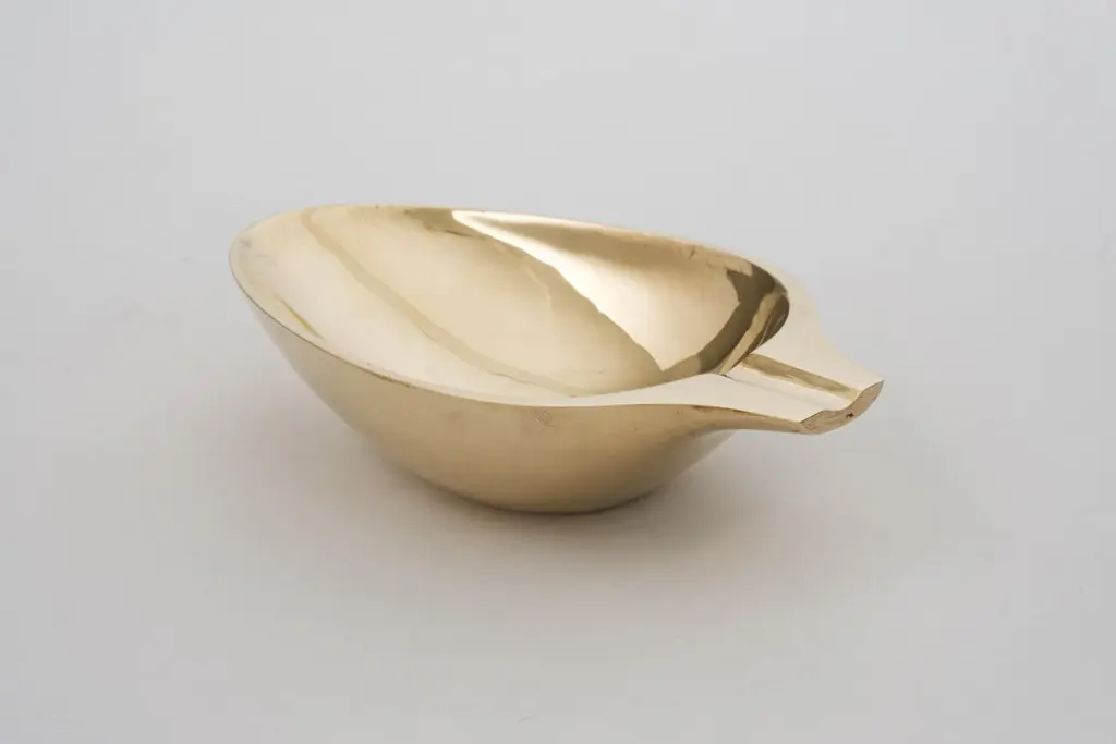 Carl Aubo¨ck Model #3548 polished brass bowl. Designed in the 1950s, this incredibly refined and sculptural Viennese bowl is executed in polished brass. Originally conceived as an ashtray, this decorative vessel can be used for a variety of purposes.Price is per item. One in stock ready to ship. Available in unlimited quantities. In-stock availability is subject to change at any time. Out of stock lead time 2-3 weeks or more. For time-sensitive orders, kindly inquire prior to purchasing.Produced by Carl Auböck IV in the original Auböck Werkstätte in the 7th district of Vienna using the same exacting standards, high-quality materials, original molds and techniques of his legendary grandfather. Auböck's design career was long and varied, reaching its pinnacle of prestige at the Triennale di Milano in 1954, where he received four gold medals in recognition of his iconic work.Please note that only one representative example of each item is shown in the images. Finish varies from item to item due to the handmade nature of their fabrication and due to the unique chemical patination process, which is meant to simulate 80-100 years of exposure of brass to sunlight.Made to order. All sales are final.