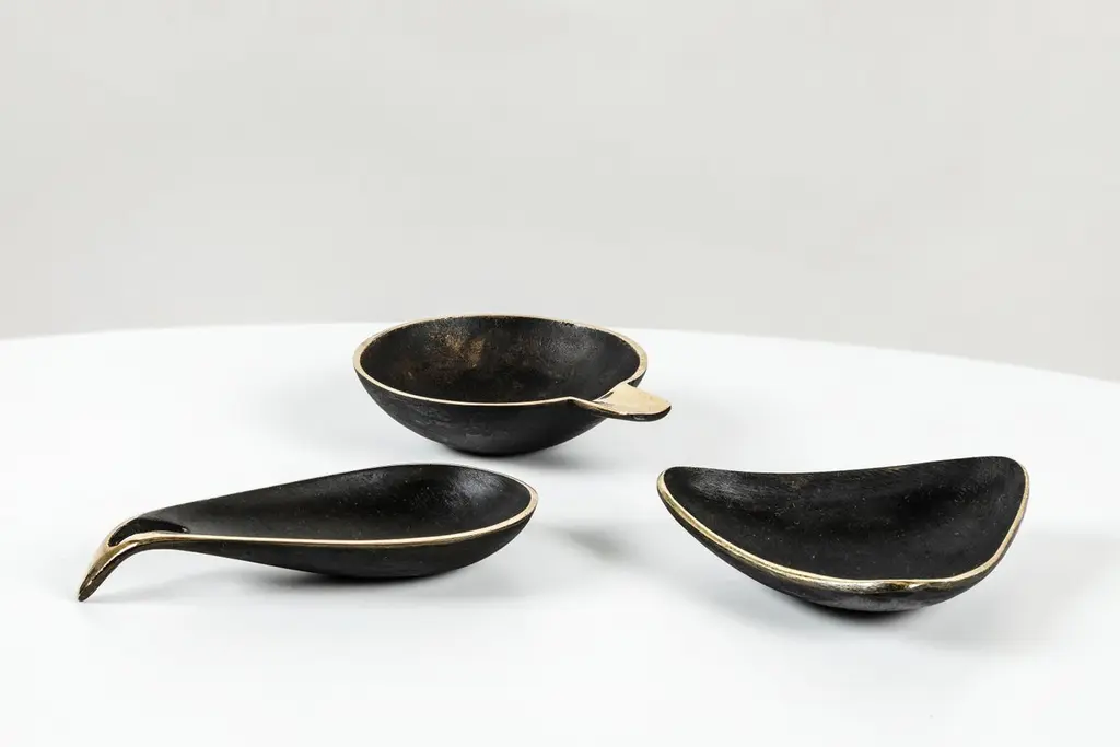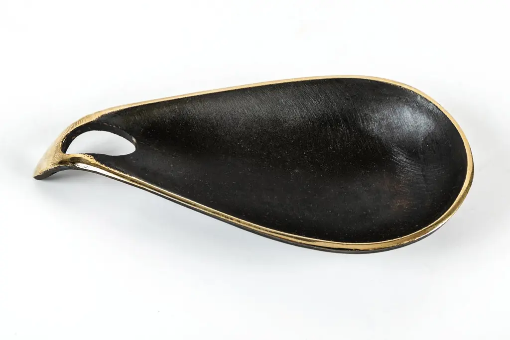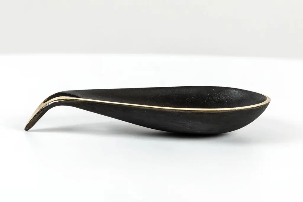 Carl Auböck Model #3904 brass bowl. Designed in the 1950s, this incredibly refined and sculptural Viennese bowl is executed in polished and darkly patinated brass. Originally conceived as an ashtray, this decorative vessel can be used for a variety of purposes.Price is per item. Available in unlimited quantities.Produced by Carl Auböck IV in the original Auböck Werkstätte in the 7th district of Vienna using the same exacting standards, high-quality materials, original molds and techniques of his legendary grandfather. Auböck's design career was long and varied, reaching its pinnacle of prestige at the Triennale di Milano in 1954, where he received four gold medals in recognition of his iconic work.Please note that only one representative example of each item is shown in the images. Finish varies from item to item due to the handmade nature of their fabrication and due to the unique chemical patination process, which is meant to simulate 80-100 years of exposure of brass to sunlight.Made to order. All sales are final.