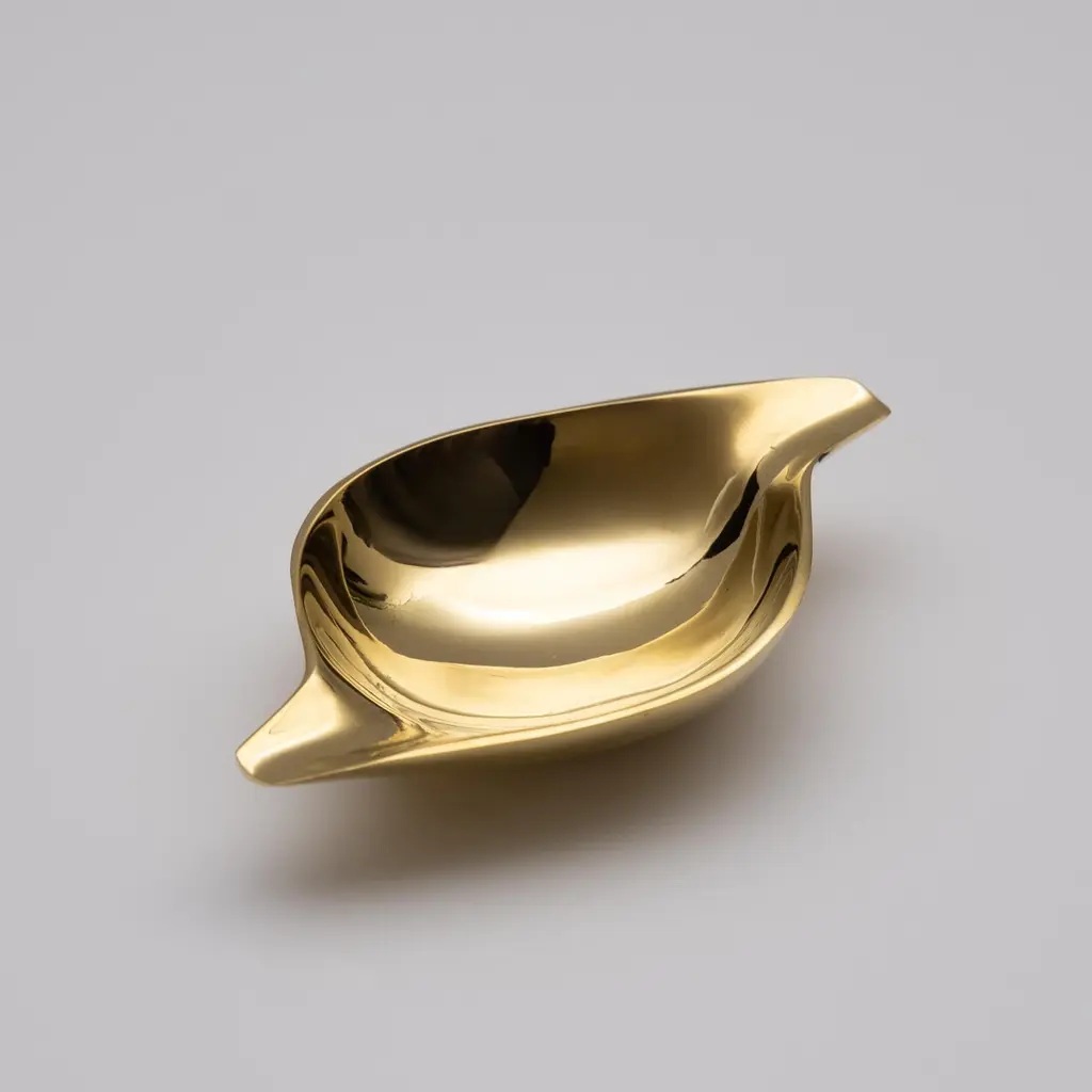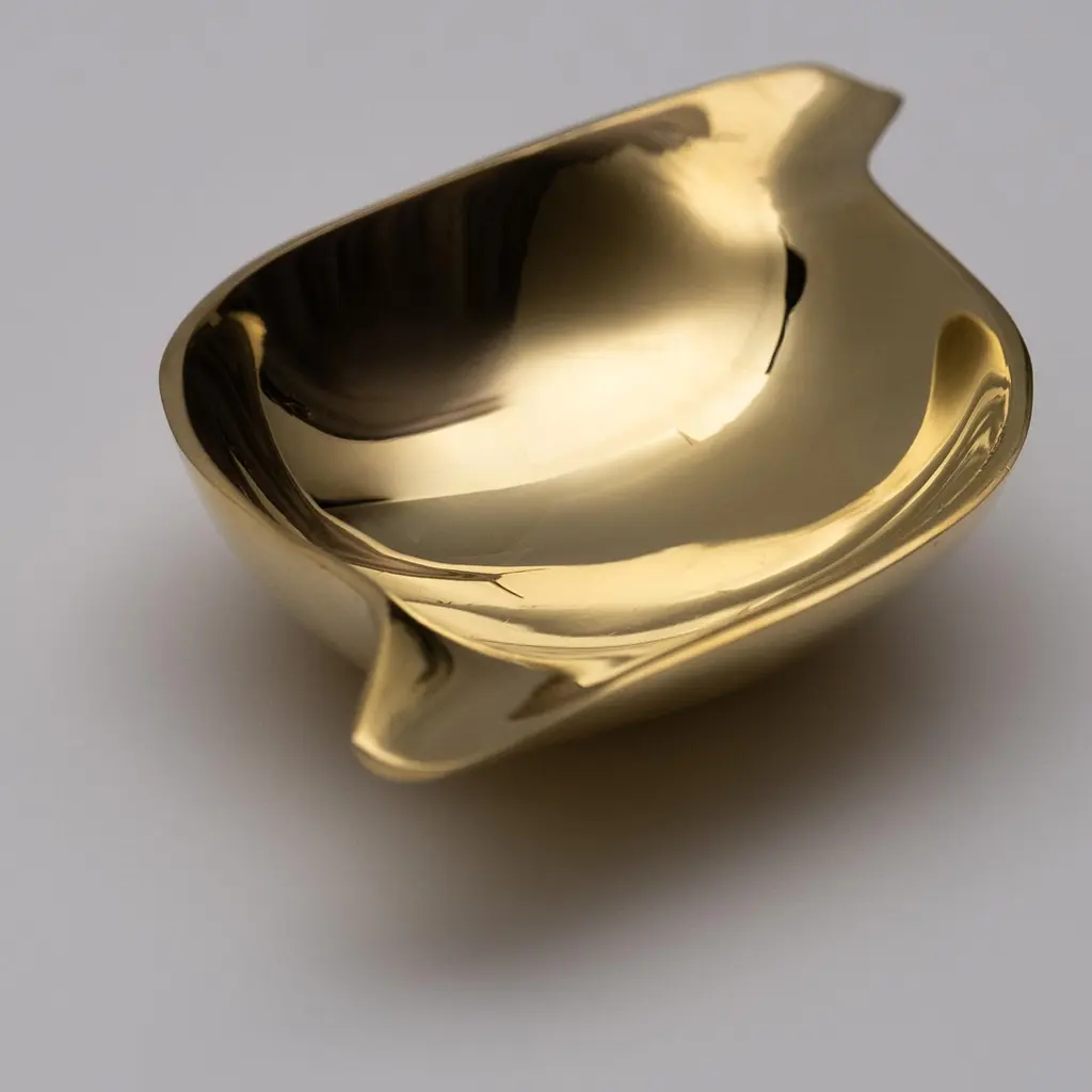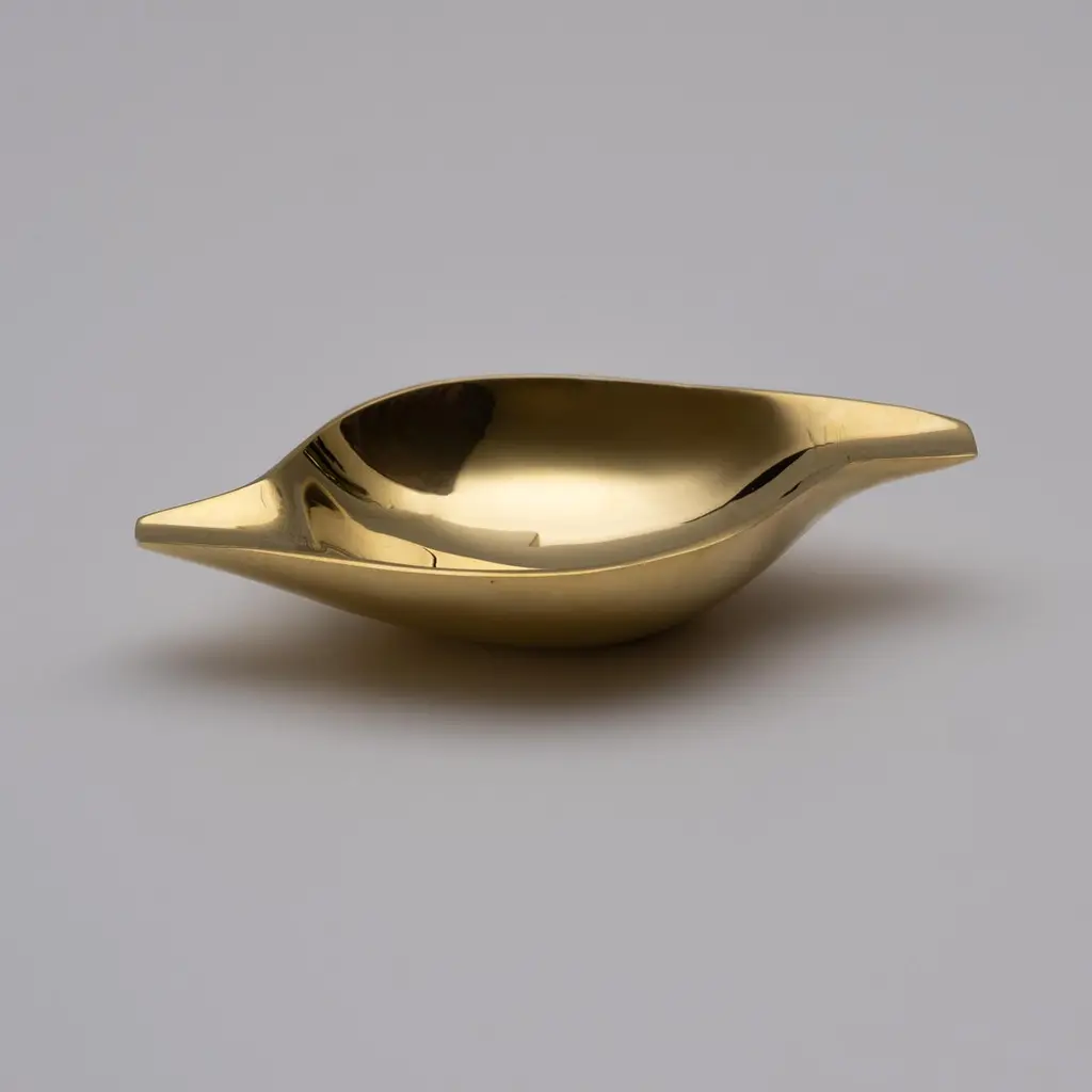 Carl Auböck model #4026A polished brass bowl. Designed in the 1950s, this incredibly refined and sculptural Viennese bowl or catch-all is executed in polished brass. Originally conceived as an ashtray, this decorative vessel can be used for a variety of purposes.Price is per item. One in stock ready to ship. Available in unlimited quantities. Out of stock lead time 2-3 weeks or more. Also available in patinated brass in a separate listing.Produced by Carl Auböck IV in the original Auböck Werkstätte in the 7th district of Vienna using the same exacting standards, high-quality materials, original molds and techniques of his legendary grandfather. Auböck's design career was long and varied, reaching its pinnacle of prestige at the Triennale di Milano in 1954, where he received four gold medals in recognition of his iconic work.Please note that only one representative example of each item is shown in the images. Brass is unlacquered and will develop a patina over time. Regular polishing can prevent patination if desired.Made to order.