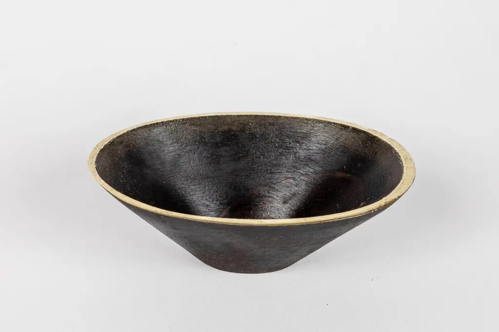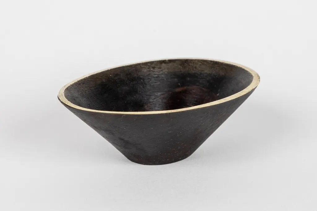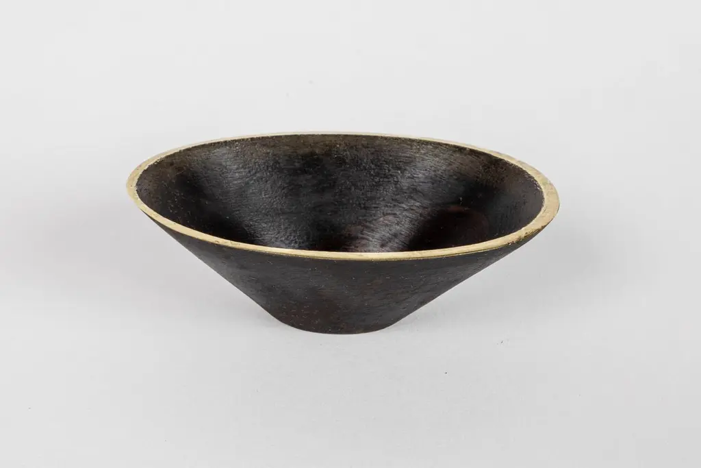 Carl Auböck model #4280 bowl in patinated brass. Designed in the 1950s, this incredibly refined and sculptural Viennese bowl is executed in patinated brass. Originally conceived as a petite bowl, this decorative vessel can be used for a variety of purposes.Price is per item. One in stock ready to ship. Available in unlimited quantities. Please note that in-stock availability is subject to change at any time. Allow additional 3-4 weeks for items not in stock. Can take up to 8 weeks.Produced by Carl Auböck IV in the original Auböck Werkstätte in the 7th district of Vienna using the same exacting standards, high-quality materials, original molds and techniques of his legendary grandfather. Auböck's design career was long and varied, reaching its pinnacle of prestige at the Triennale di Milano in 1954, where he received four gold medals in recognition of his iconic work.Please note that only one representative example of each item is shown in the images. Finish varies from item to item due to the handmade nature of their fabrication and due to the unique chemical patination process, which is meant to simulate 80-100 years of exposure of brass to sunlight.Made to order. All sales are final.