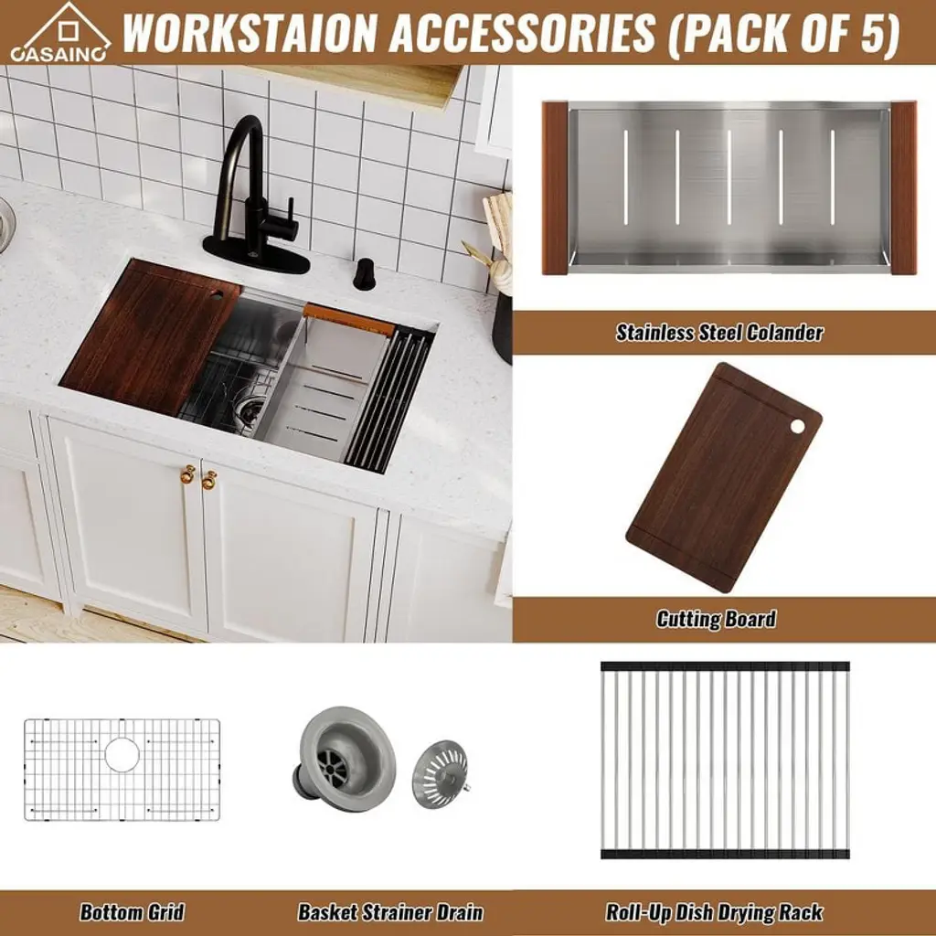 Casainc 32-inch Single Bowl Undermount Stainless Steel Kitchen Sink