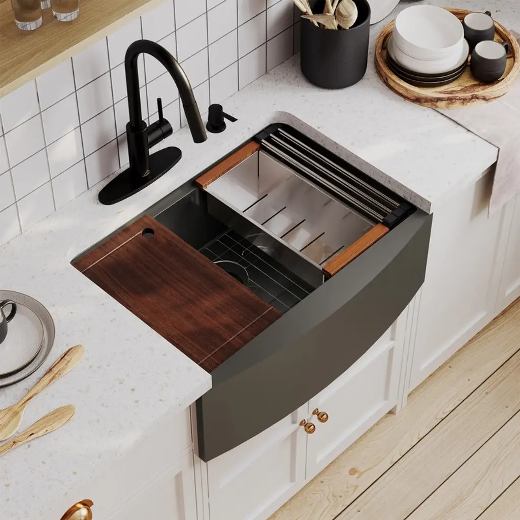 CASAINC fireclay sinks is kiln-fired at high temperatures of 2205°F and features solid core construction that makes it highly resistant to impact and thermal shock. At the same time, using advanced glazing technology to create a durable non-porous finish.