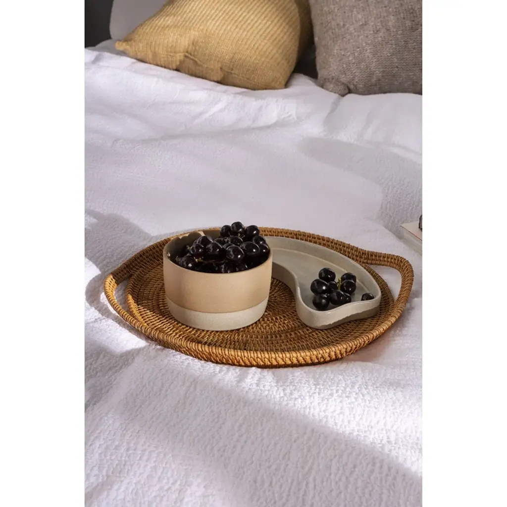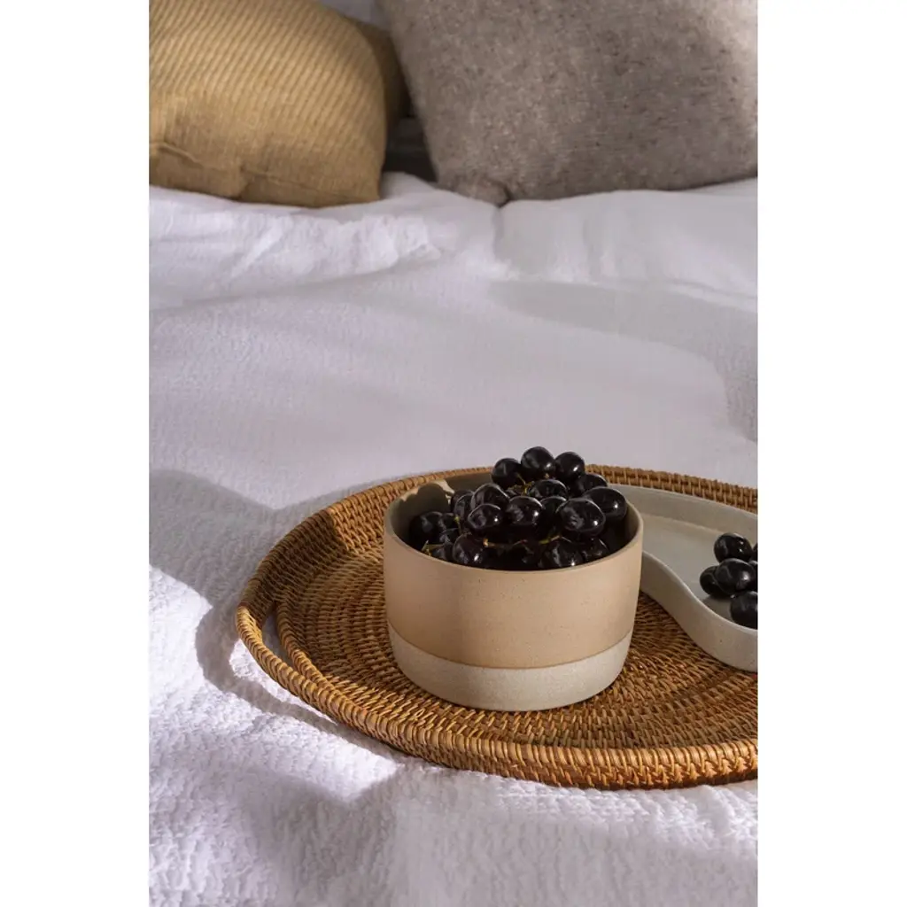 The Catalin bowl pairs perfectly with a two-tone bisque glazed finish in speckle finish. Add it to your home or table for an artful and hand-thrown look. Holds 20 oz.