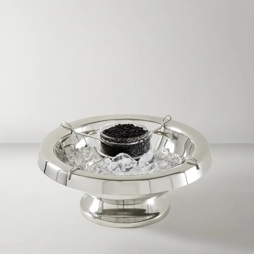 A sleek silver finish and timeless shape make this caviar serve bowl an elegant addition to your serveware collection.