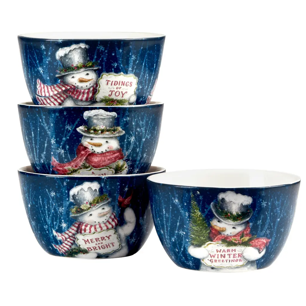 Certified International Snowman Greetings 5.25" Ice Cream/dessert Bowls, Set Of 4 - 5.25" Diameter X 3" - Blue - 5.25" Diameter X 3"