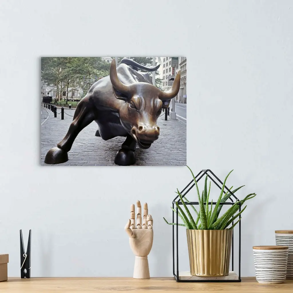'Charging Bull' by Arturo Di Modica in Bowling Green Park in Lower Manhattan. Photograph by Carol M. Highsmith, c1990.