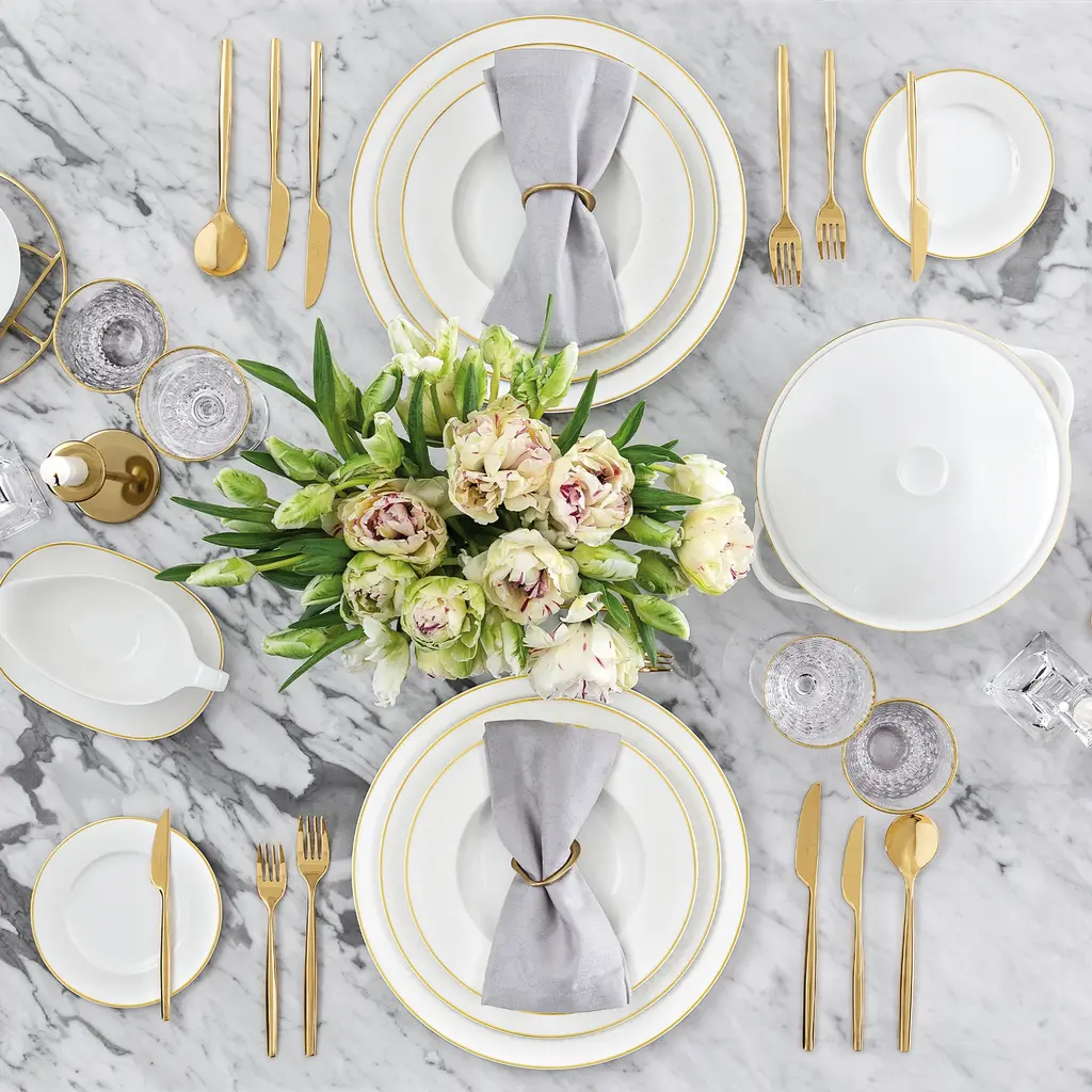 Opting for a clean and pure aesthetic, Villeroy & Boch turns to minimalist elements with its Château Septfontaines collection. Crafted from premium bone porcelain, this collection features an understated design that is ideal for bringing a sense of calm to your dining experience. Trimmed in precious gold.