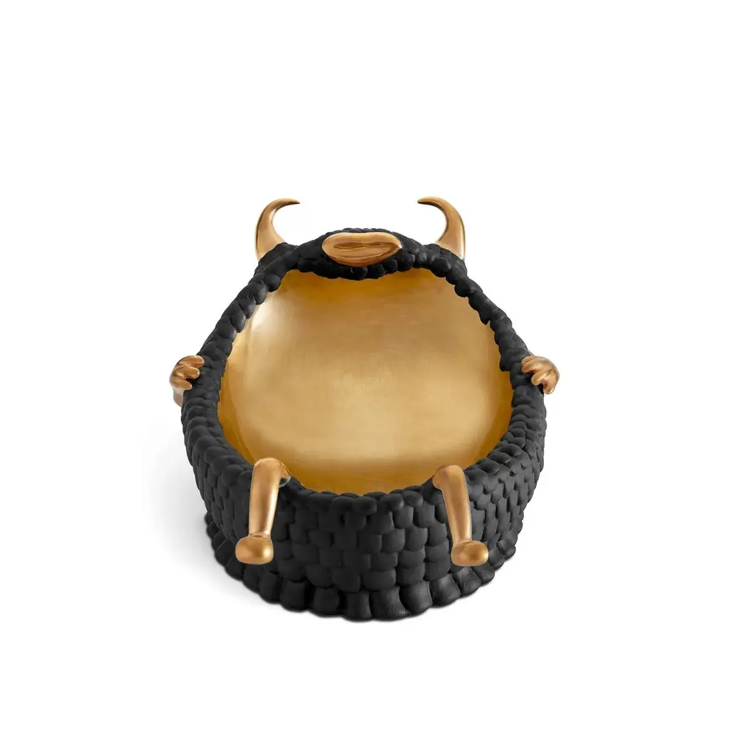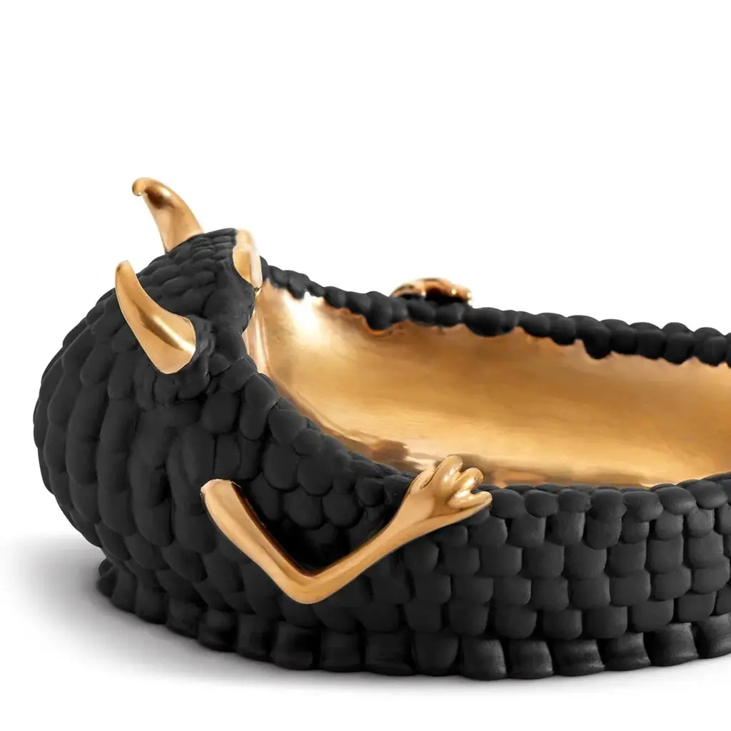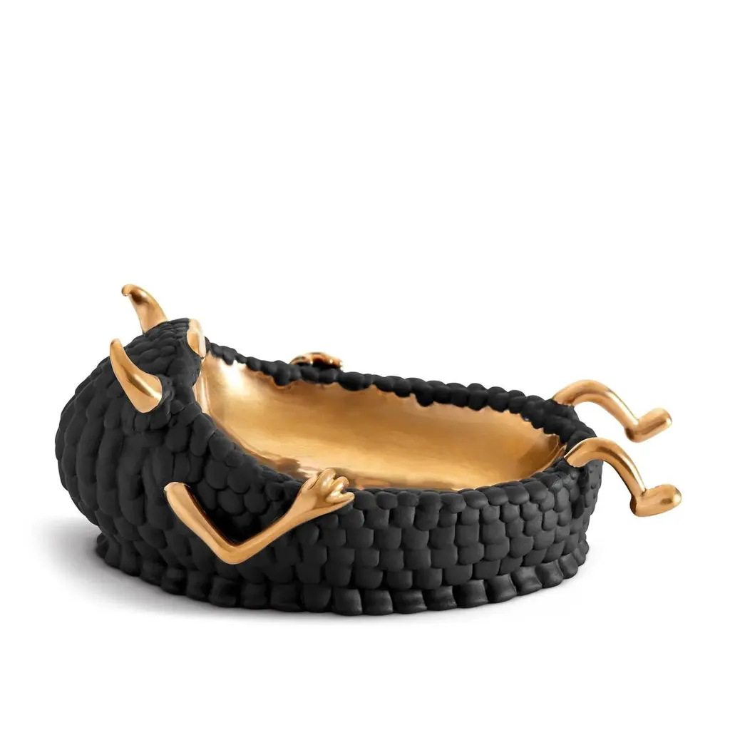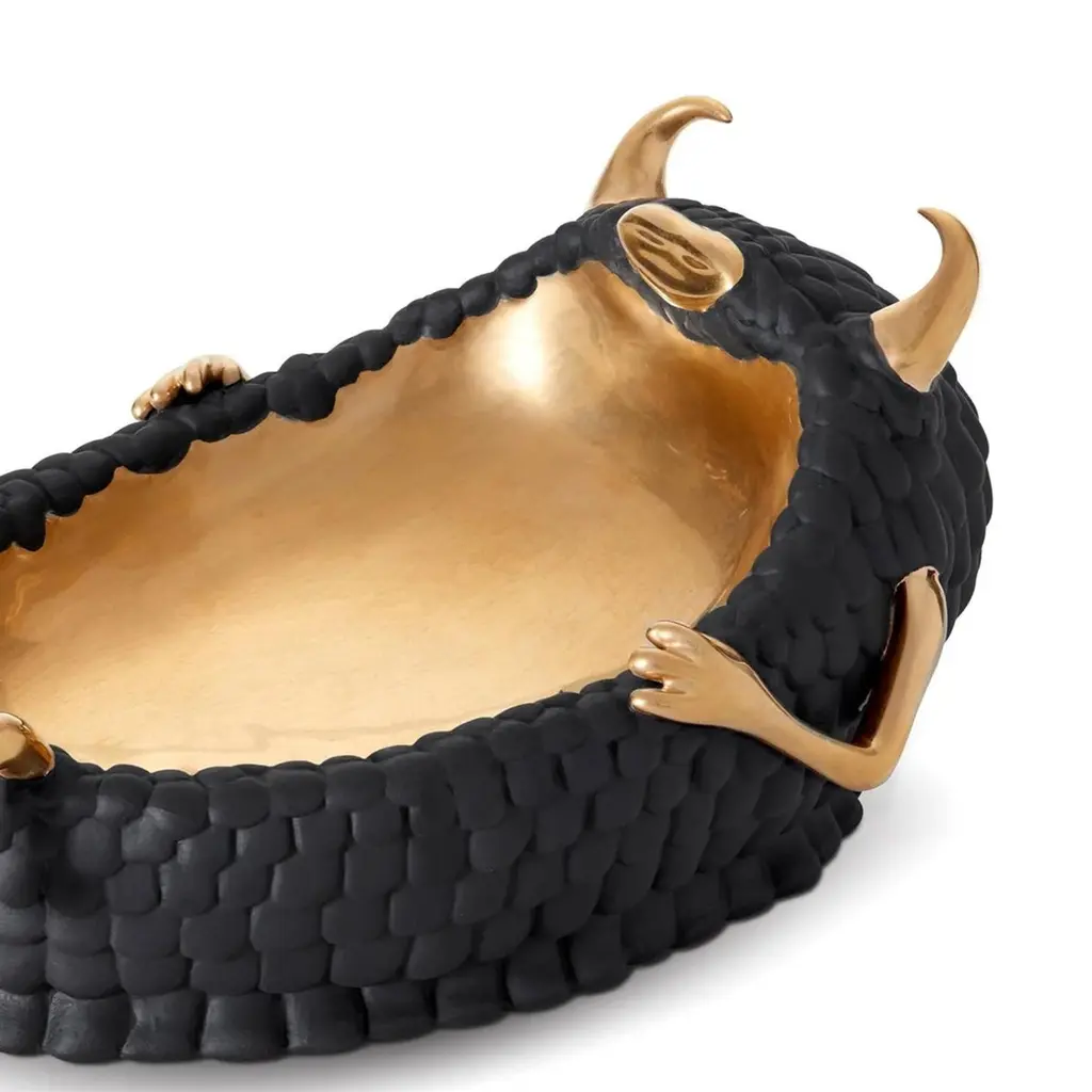 Bowl Chill Cow Black all in porcelain in black finish with gold plated (24K) finish details and inside the bowl.