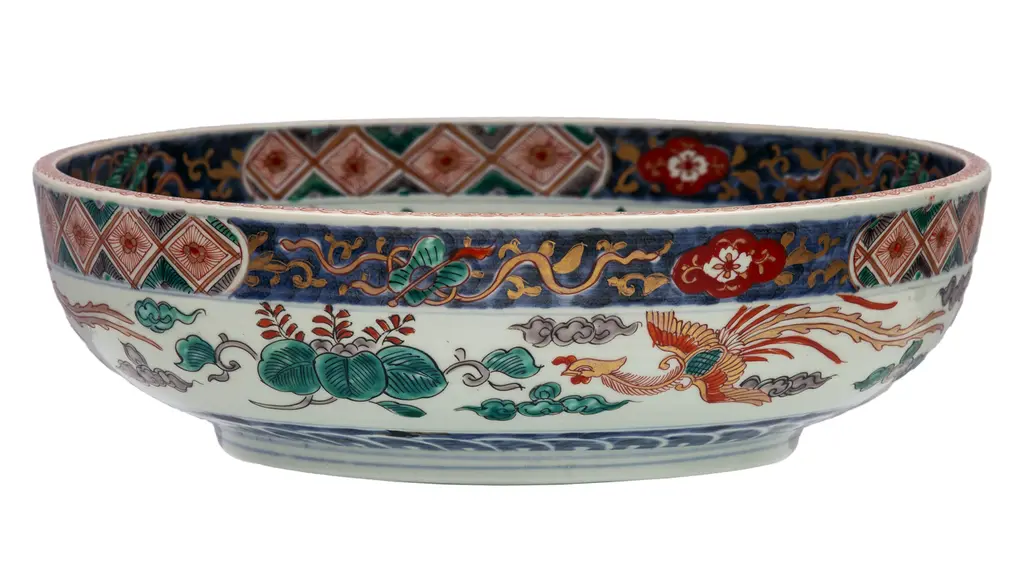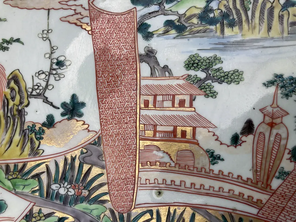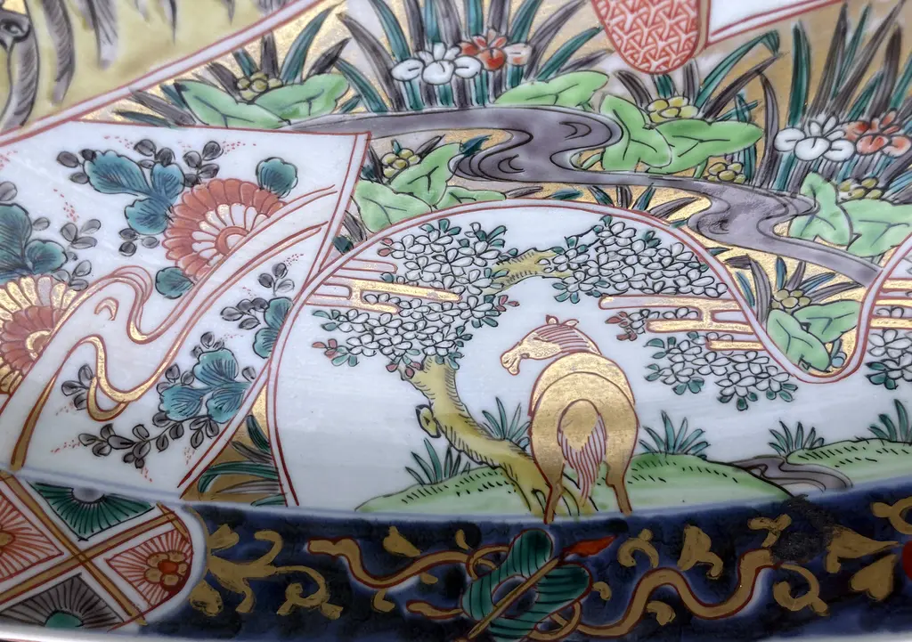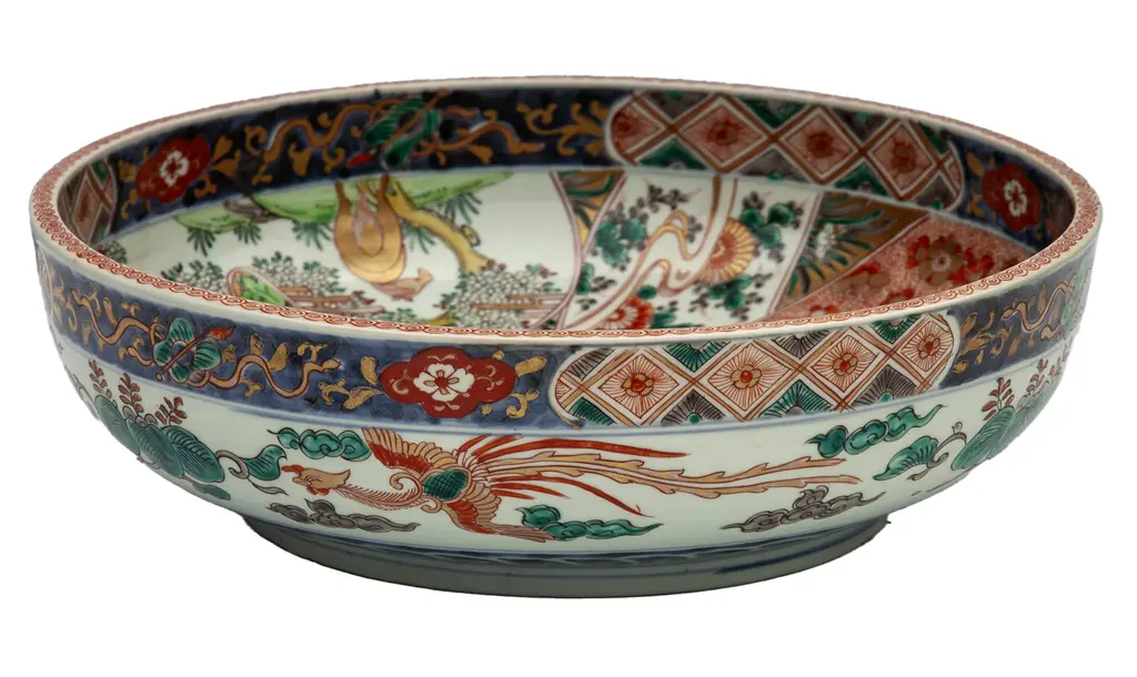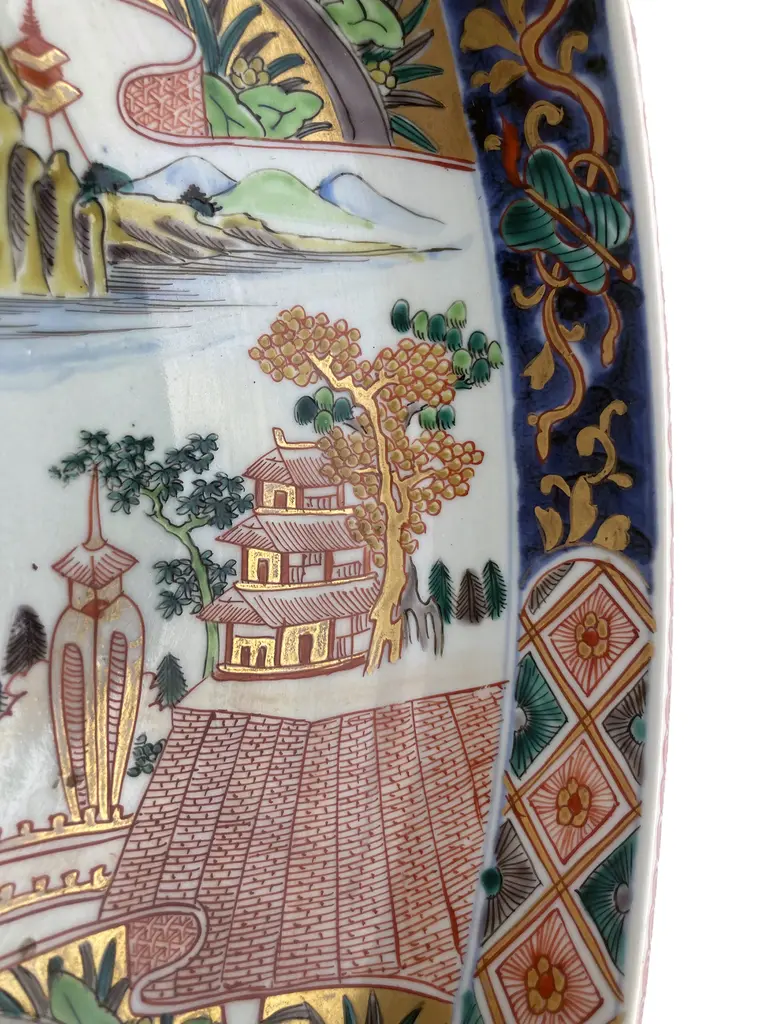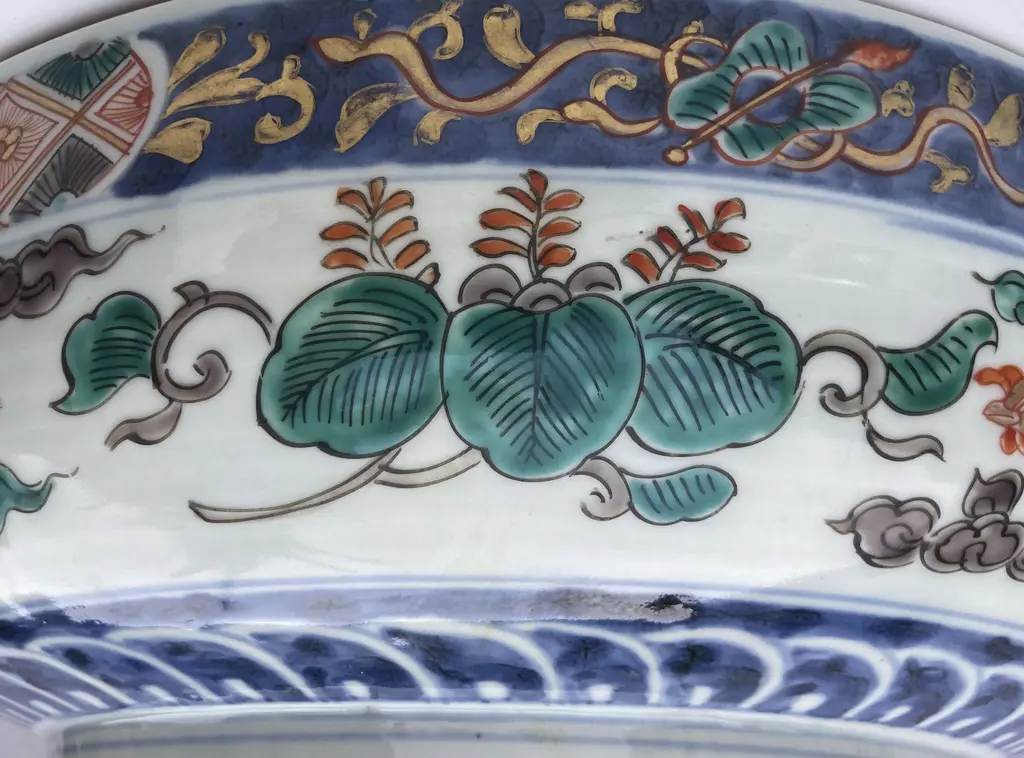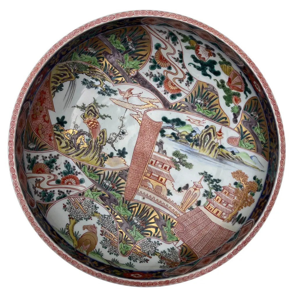 20th Century large Chinese export stoneware bowl, Circa, 1930's. Hand painted in the Japanese Imari style.
