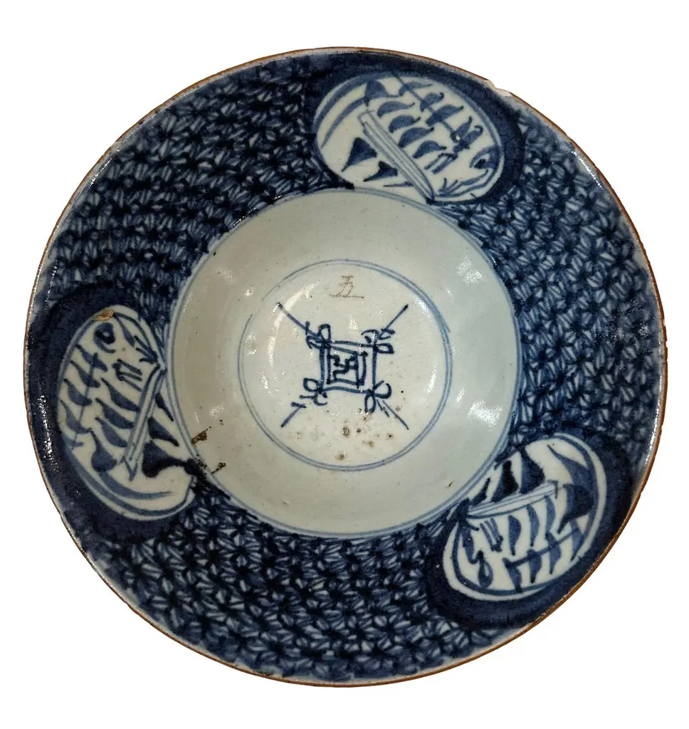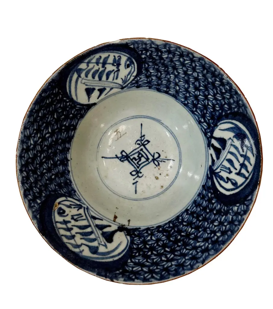 An early 19th century Qing Dynasty blue and white bowl with patina. In good condition for their age. Four available.