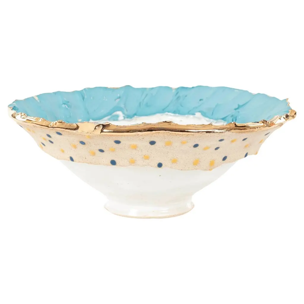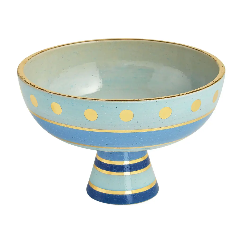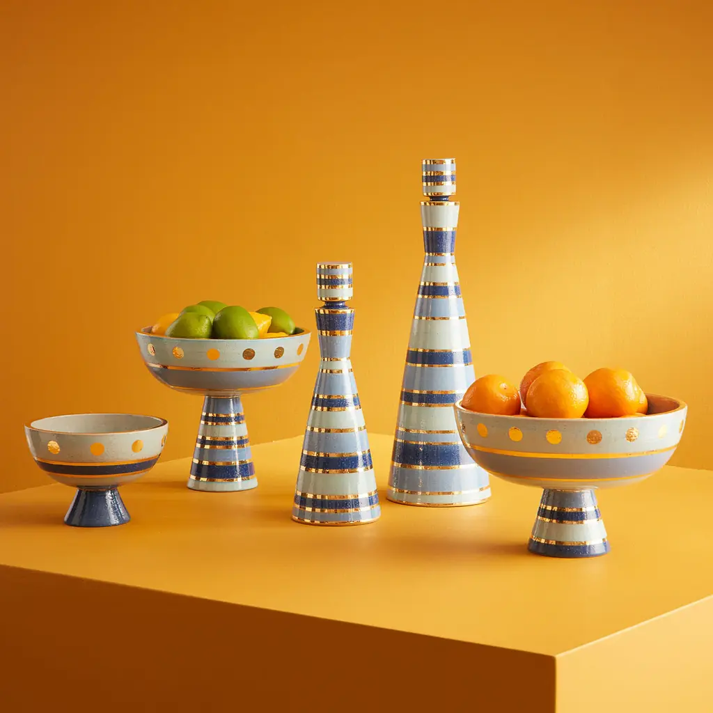 Craft Redux! Back from the vault, a classic JA collection—Chroma. Each bowl is crafted from stoneware infused with chunky grog then finished with hand-painted blue glazes and shiny gold luster. Style all three together for a multi-level centerpiece.