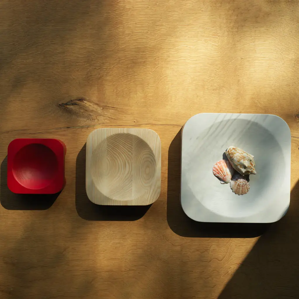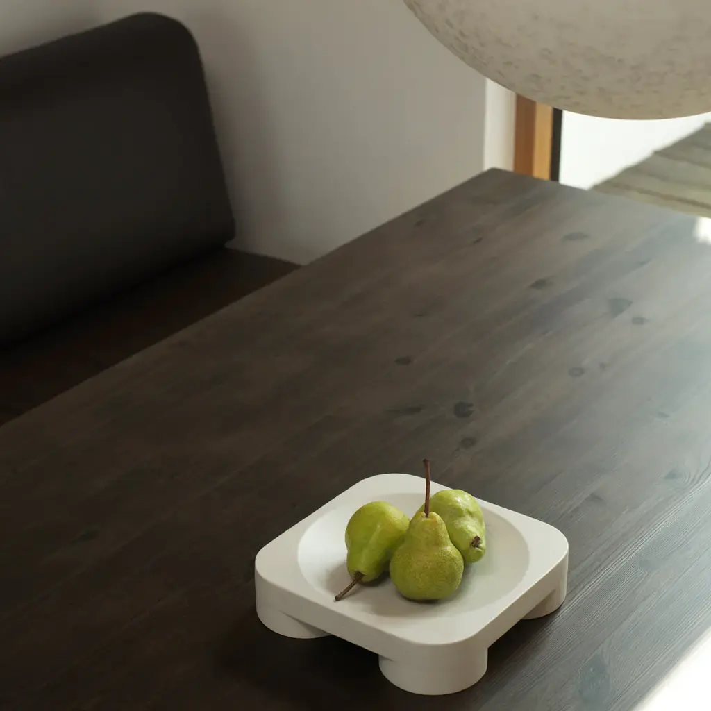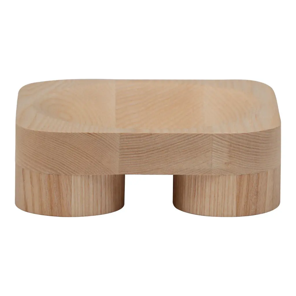 With its inherently playful yet minimalistic design, Chub stands out for its evident sturdiness, a tribute to the solid, durable quality of wooden interior objects from the designer's 1970's childhood. Chub is crafted from FSCTM certified (FSC-C163461) ash and distinguished by four chubby feet placed at each corner in an almost monolithic manner. An elegantly curved bowl rests atop, adding a utilitarian element to the design, which presents itself as a decorative object and a functional bowl in equal measure. Sami Kallio elaborates: “The idea was to create something between a podium and a bowl. Sculptural enough to be its own centerpiece, but simple enough to let any contents shine".