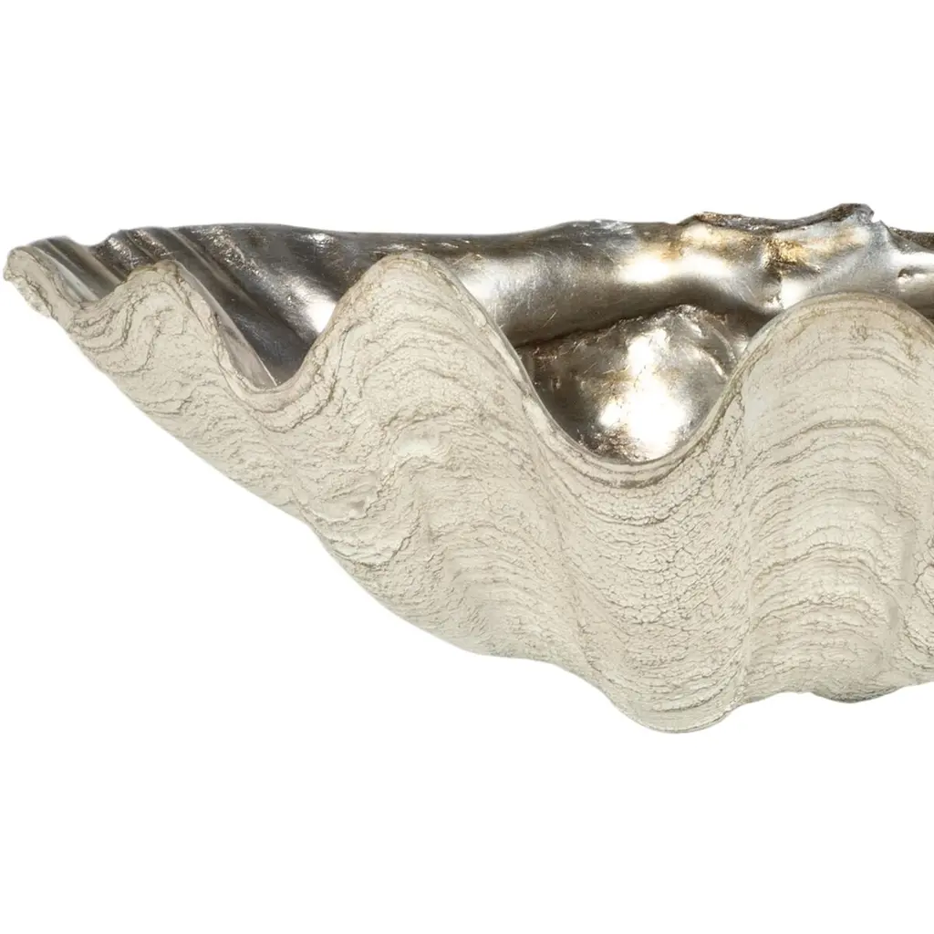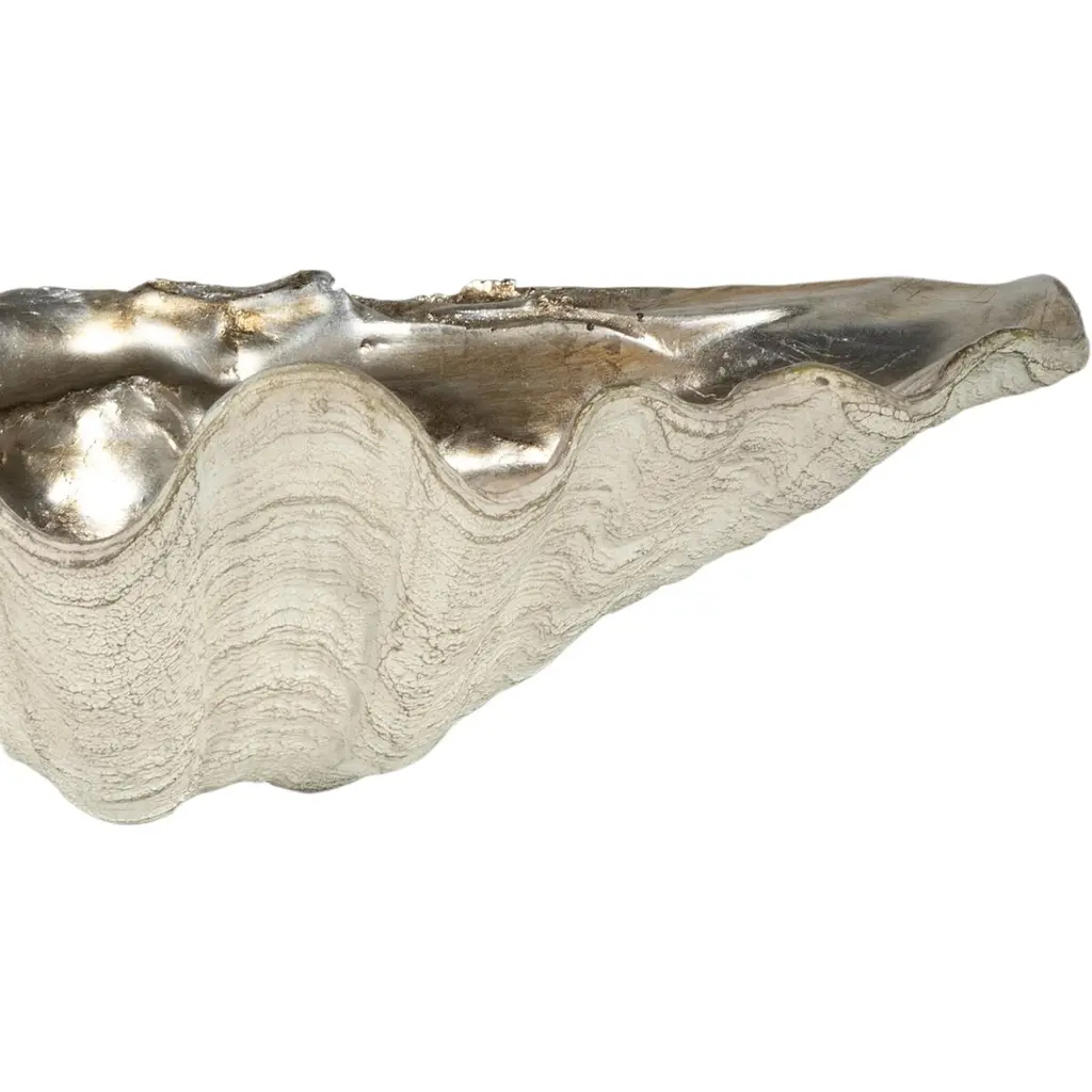 Inspired by the natural elegance of a clamshell, the Clam Bowl serves as a statement piece and a functional bowl. Its ambered silver leaf interior enhances the intricate detailing of the shell, capturing the essence of coastal beauty. Perfect for a sideboard or coffee table, this substantial bowl adds a touch of shoreline charm to your living space.