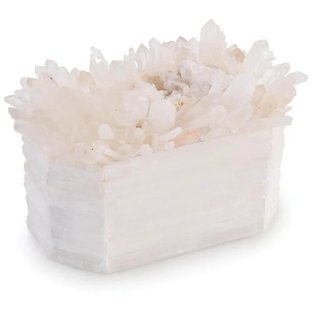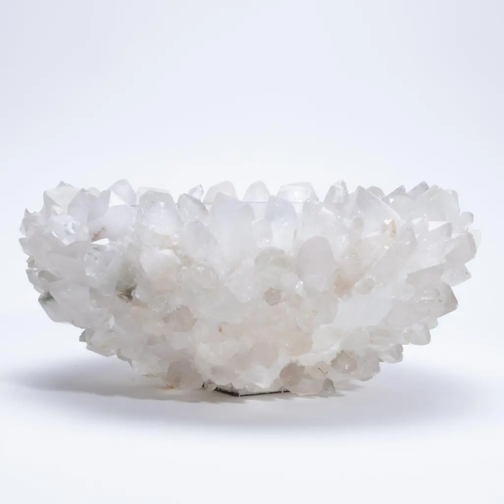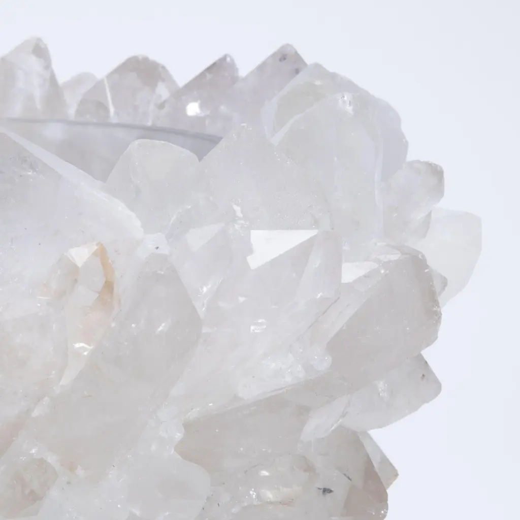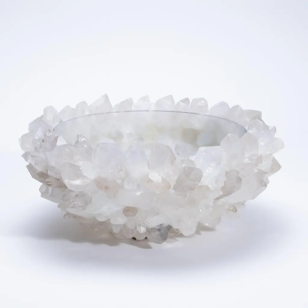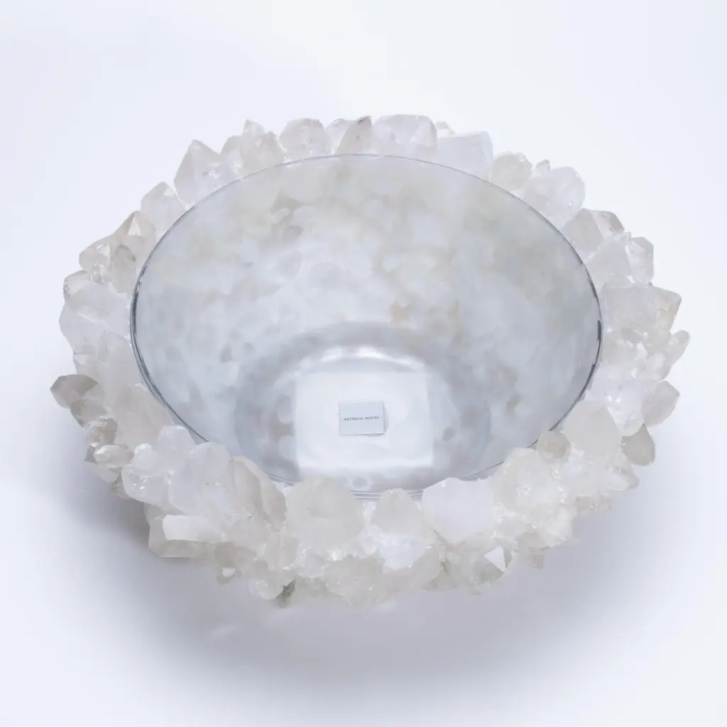 Glowing with quiet brilliance, the Classic Large Bowl in Clear Quartz by Kathryn McCoy exudes an elemental elegance that feels both grounded and celestial. Handcrafted from clusters of luminous clear quartz and finished with a smooth, glass-lined interior, each bowl is one of a kind—formed naturally and refined by hand to create a sculptural masterpiece. The clarity and structure of the quartz catch the light from every angle, creating a soft radiance that shifts throughout the day. Its neutral palette makes it exceptionally versatile, serving beautifully as a fruit bowl, a refined vessel for floral arrangements, or a captivating standalone centerpiece. The tactile contrast between the crystalline exterior and the polished interior elevates it beyond function into the realm of collectible art. Both delicate and powerful, this bowl is a celebration of the earth’s raw beauty—reimagined for the most sophisticated interiors with timeless appeal and quietly commanding presence.