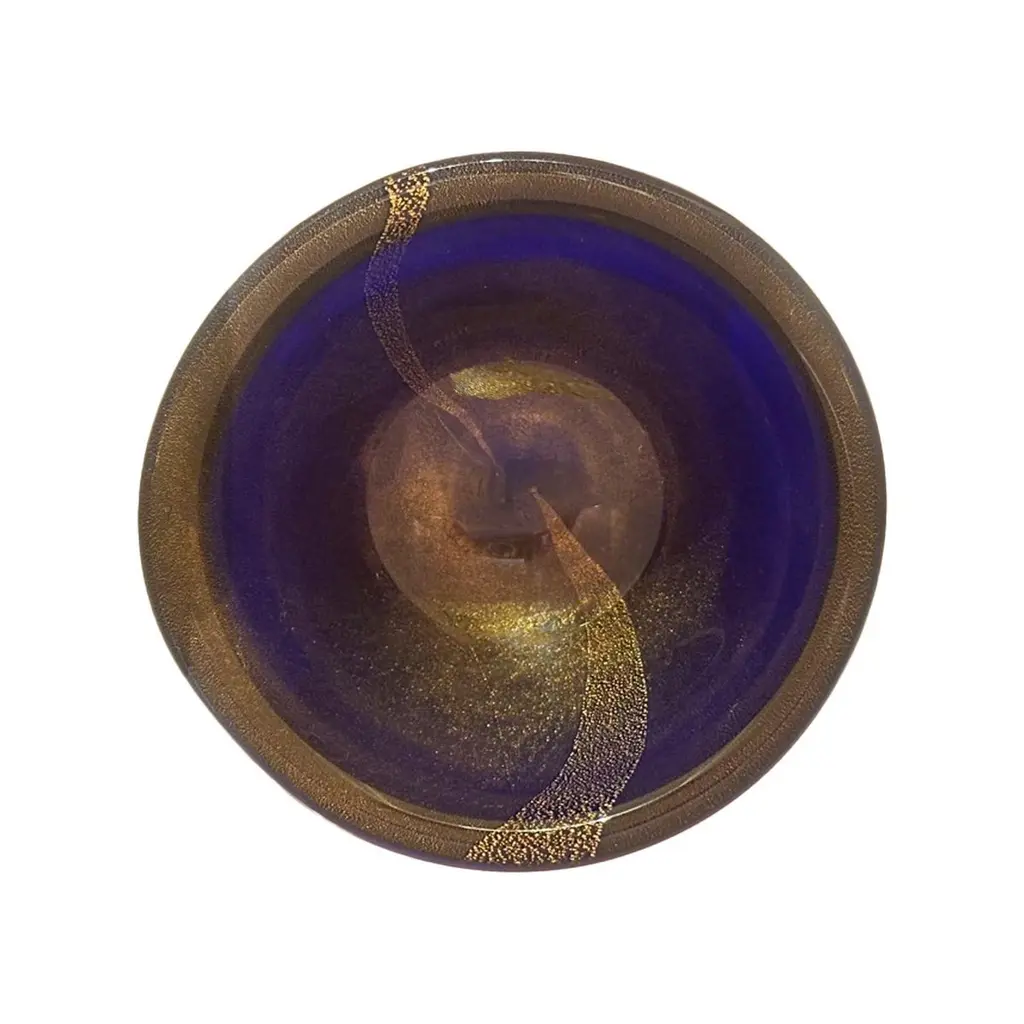 Cobalt Blue Murano Glass Bowl With Avventurina