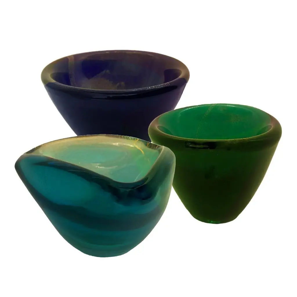 Hand-crafted, by skilled artisans of Murano , this glass bowl showcases the vibrant colors and intricate detail that characterize the islands tradition of glass making. An exquisite Cobalt Blue with swirls of shimmering gold avventurina, this bowl is a stunning addition to any space. It also makes a unique gift. Choose from a selection of colors and shapes now available in our NYC showroom.