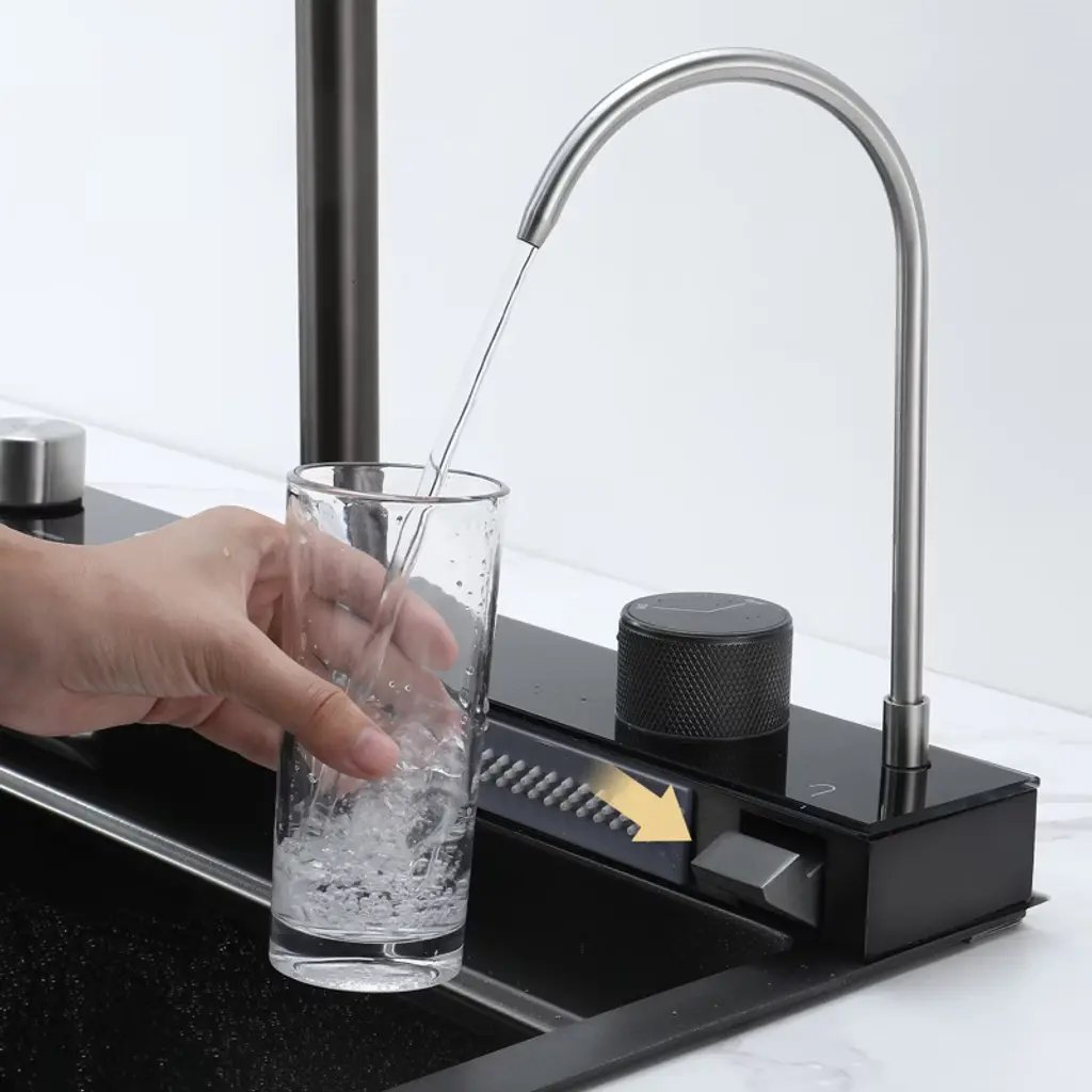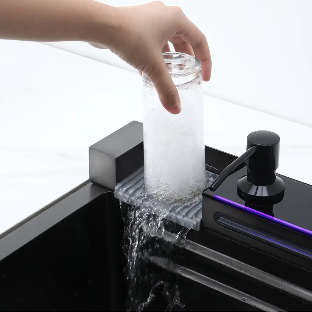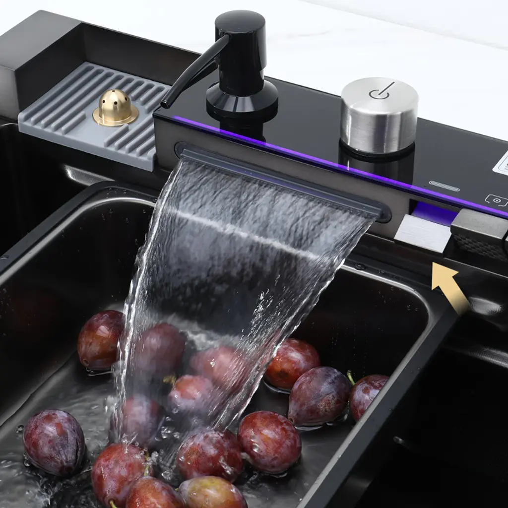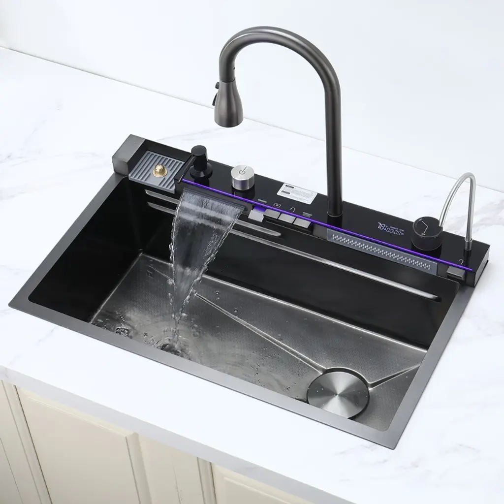 304 STAINLESS STEEL KITCHEN SINKS: Made of 304 stainless steel, the thickness is uniform and the texture is better. Longer service life. The flawless, smooth texture and golden ratio R10 rounded corners make it more aesthetic, and functional. 29.5 INCH WORKSTATION KITCHEN SINK: Workstation sinks maximize efficiency and help keep the food prep zone tidy. X-SHAPED DIVERSION DESIGN: The bottom of the sink adopts a scientific X-shaped diversion design which makes it fast, and effectively drain off water. KITCHEN SINK SETS with SINGLE TRACK: Designed with an integrated single-tier rail for sliding built-in custom accessories, the Workstation Sink provides you with a versatile, efficient space for all your kitchen tasks. The package includes the deep kitchen sink, kitchen faucet,cutting board, drainage basin and drain. EFFECTIVE NOISE REDUCTION: The outer side of the sink's bottom is not only covered with sound-dampening pads but also sprayed with damp-proof paint coating to achieve the effect of noise reduction and moisture absorption, making the sink quieter to use and reducing condensation at the bottom of the sink. SINGLE BOWL SINK: The single bowl sink is simple and convenient to install, has more load-bearing capacity, and is suitable for all kinds of tabletop in-home improvement items. Ideal for busy kitchens, either home or restaurant, the workstation sink converts your kitchen sink into a work/prep space.