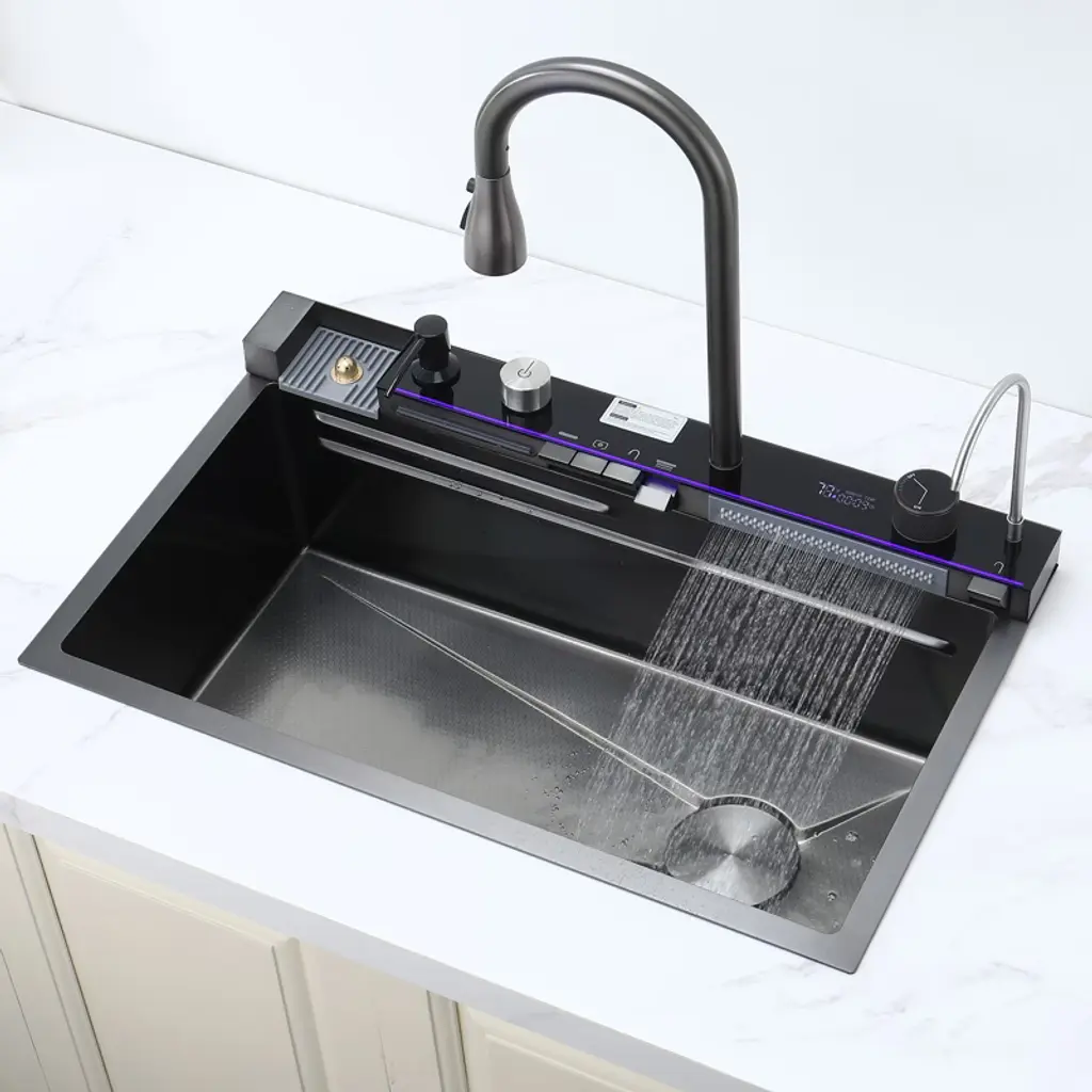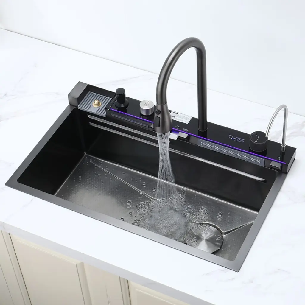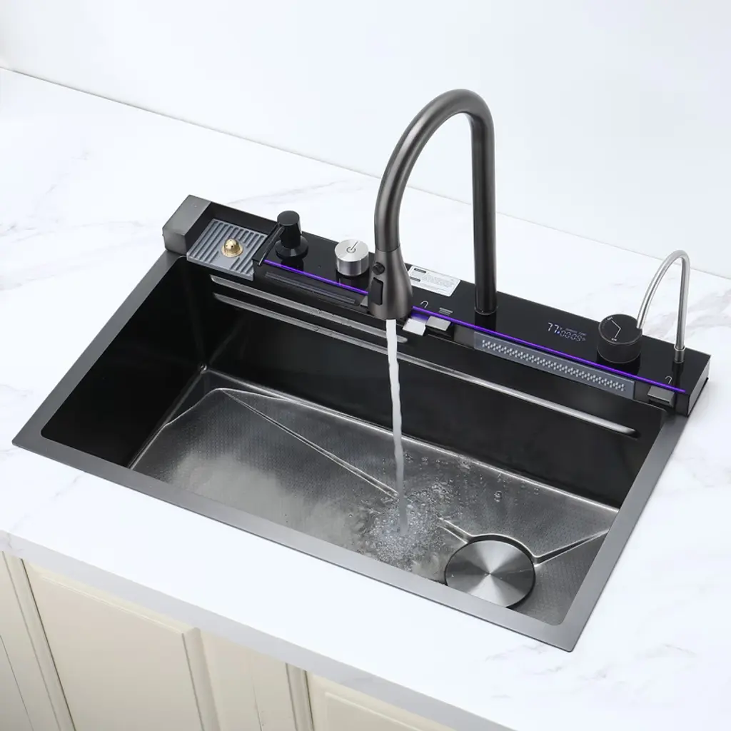 Cobbe Nano Gray All-in-one 29.5" Stainless Steel Single Bowl Sink, Multifunctional Drop-in Single Bowl Workstation Kitchen Sink Kit With Accessories