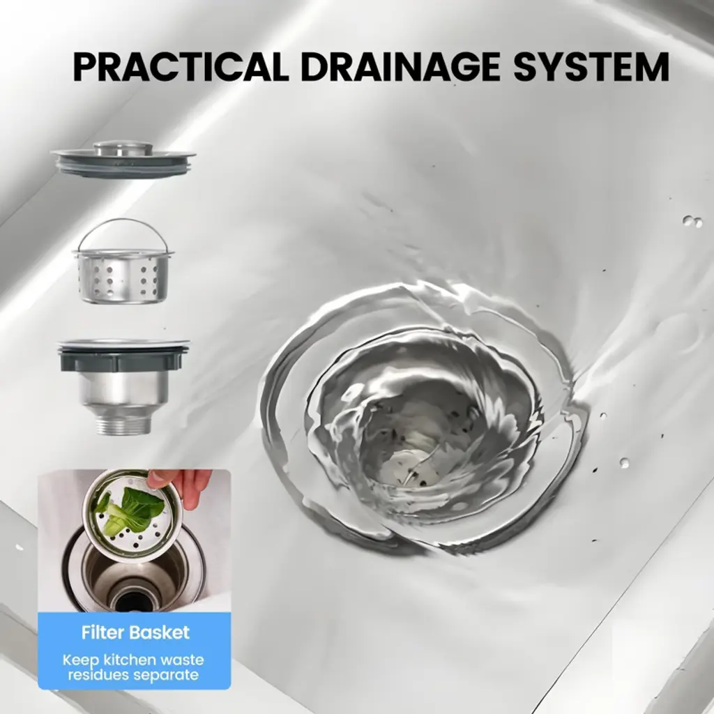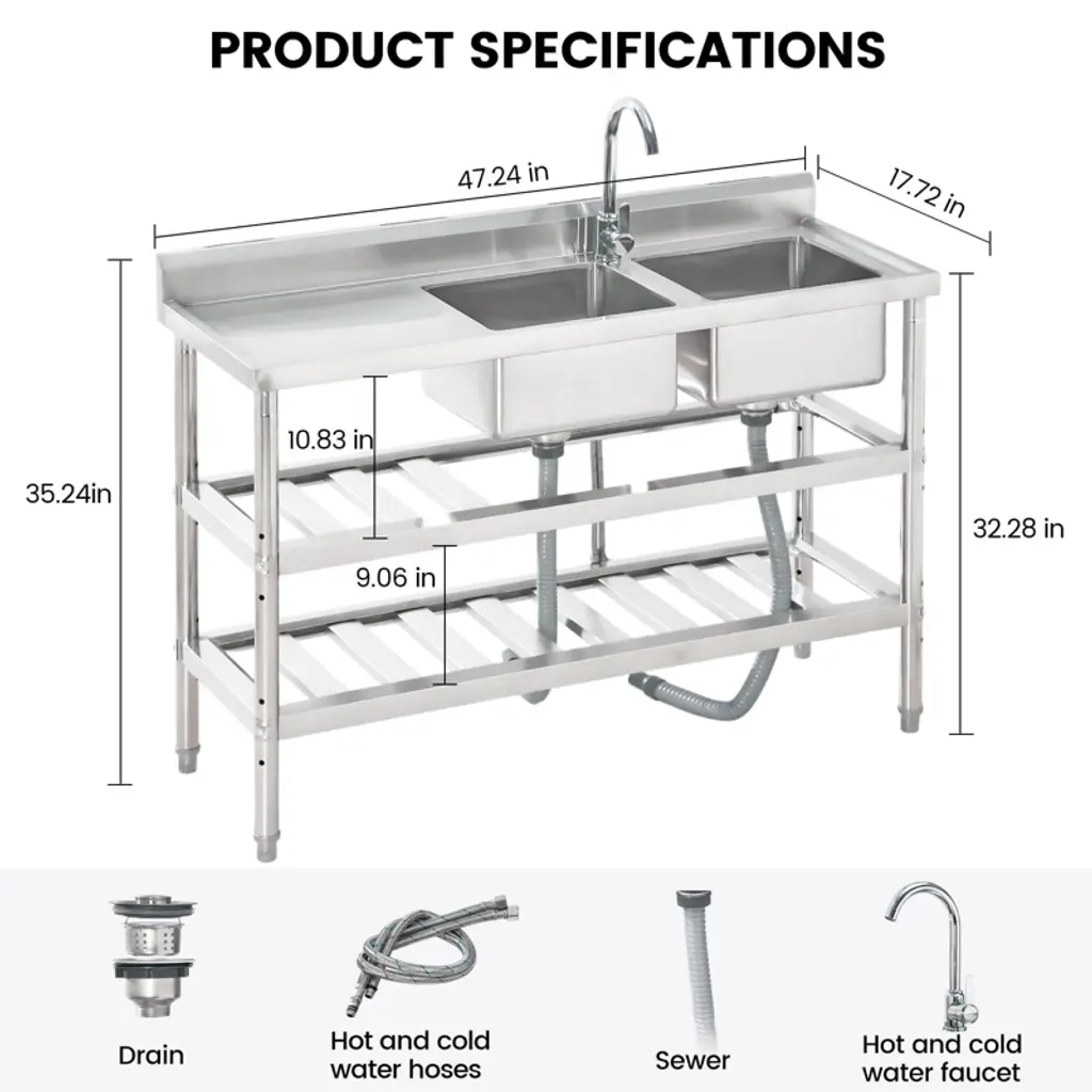 Commercial Utility Sink, Freestanding Double Bowl Kitchen Sink Set With Cold And Hot Water Pipe