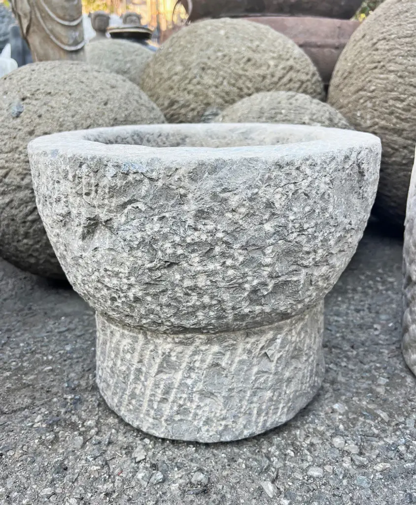Consigned Vintage Chiseled Stone Bowl 8