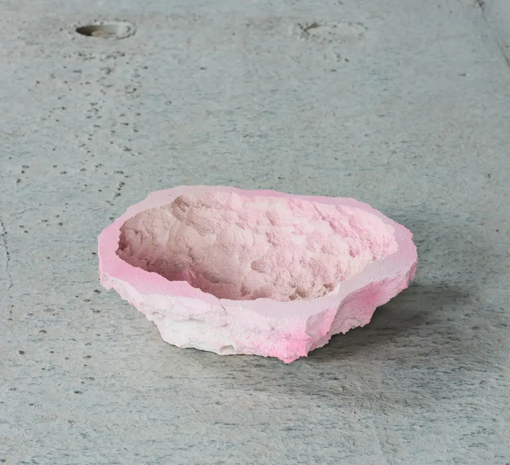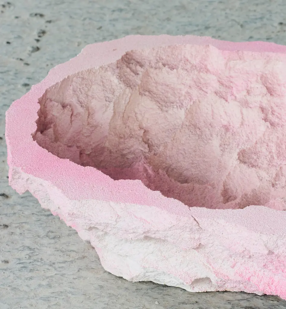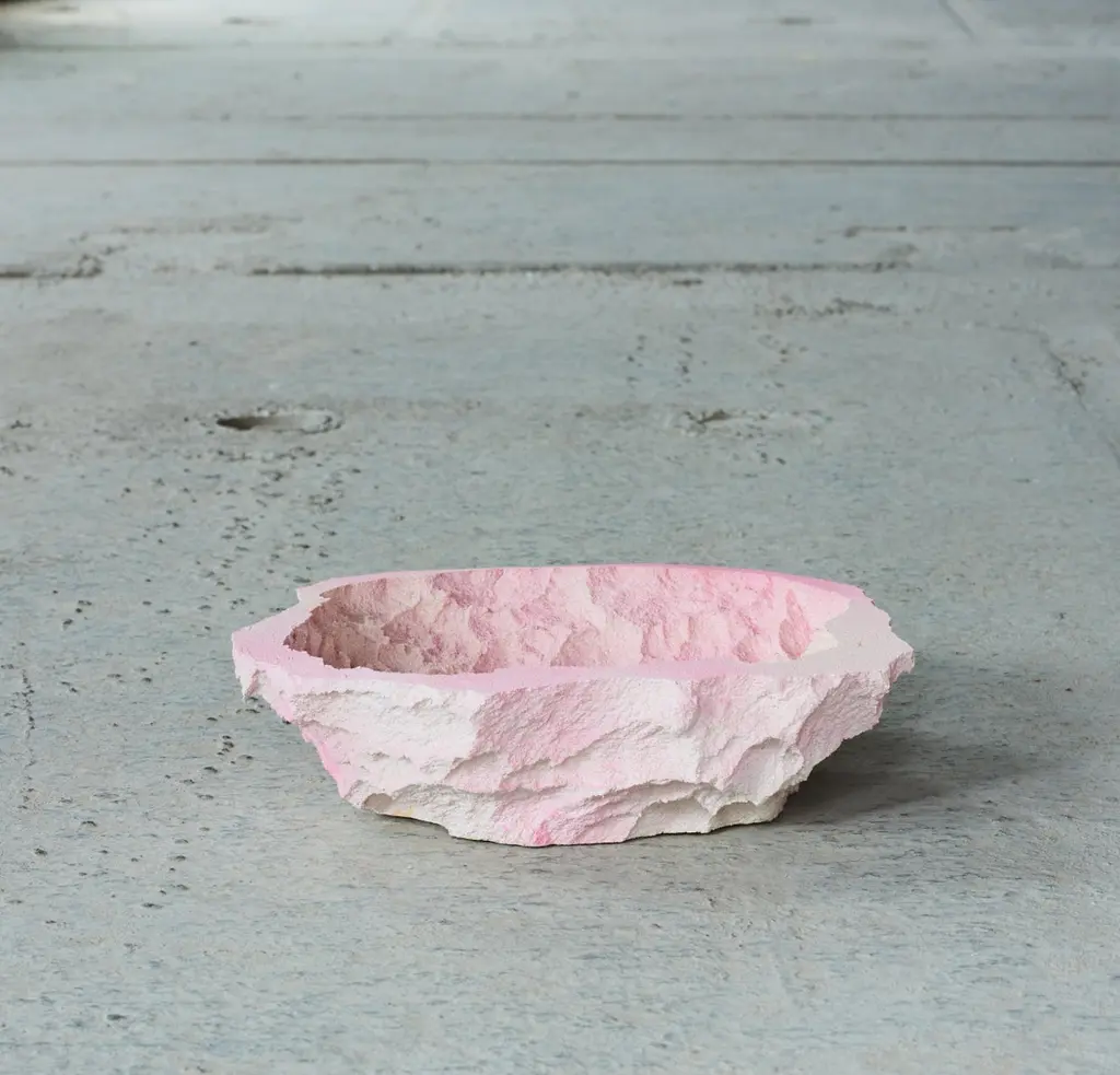 One-off a kind - Contemporary design, rock candy bowl, embody the surface of roscks and stone.Made by the art and design duo Andredottir & BobekThey have in this collection imitated landscape with artificial materials and created an artificial scene of nature because art and design often find common ground here they ask themselves, can we live in an artificial landscape without nature or can nature be found in the artificial materials.Here you are allowed to explore the materials and explore moss and stone in a new way. The many handcrafted shapes give a natural rough looking surface that allows the eyes to wander and find new places to investigate.Candy - bowl in fade pink - From the collection "Artificial Nature" Imitates stone and rock formation made in reuced mattress and foam hardened up with resin and therefor a sustainable collection. All pieces are one of a kind and each bowl is unique.Collectible art and design pieces, limited edition and one off's. The bowls comes in different colors and structures have a look at the rest of the collection.Exhibitions and gallery object's for home and office decor, interior and design pieces.By Andredottir & Bobek Candy - bowl in fade pink - handcrafted pieces, Is made of mattress/foam which has been hardened with resin and stained with colors.it icomes in different sizes. The bowl is sustainable as we use reused foam for the objects. All pieces comes out unique. the piece has a rye surface and should therefore only be cleaned carefully with a vacuum cleaner and never a wet cloth. it is an art/design piece so always be carefull when you put thinks in it.