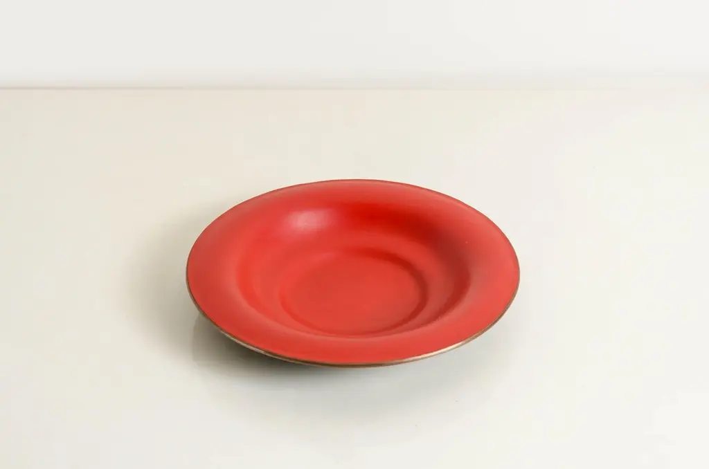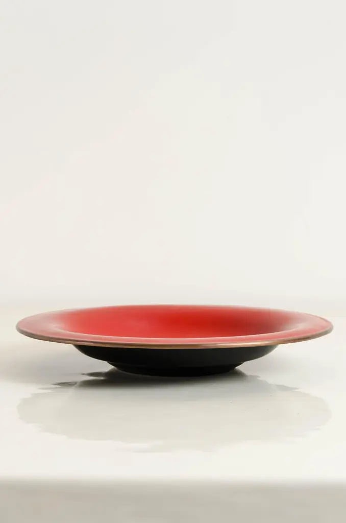 Ripple bowlRed LacquerBlack LacquerHand RepousséLimited Edition Repoussé is the traditional art of hand-hammering decorative relief onto sheet metal. This technique involves using a hammer and various shaping tools. The lacquer part is made with at least 60 coats of organic lacquer. Each layer of lacquer is applied with a curing period of 24 hours in between so that it can dry. Each piece is individually crafted and is unique.