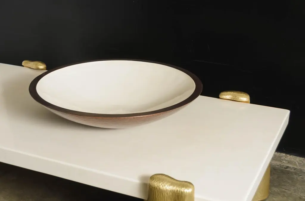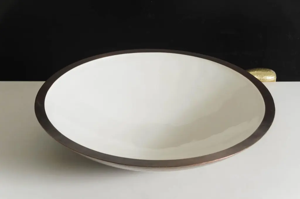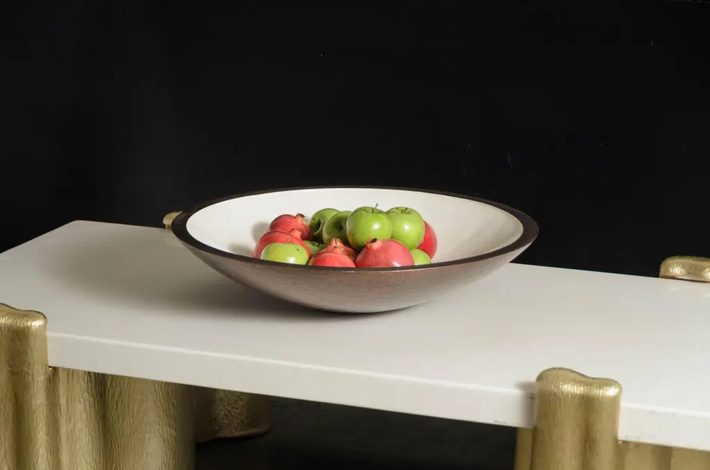Contemporary Shallow Bowl In Cream Lacquer And Copper By Robert Kuo