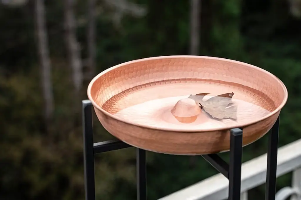 Please note, this listing is for the copper bowl only—stand is not included. Enhance your outdoor space with the Handmade Solid Copper Bird Bath Bowl, a beautiful and functional addition to any garden. Hand-hammered from 100% pure copper, this versatile bowl serves as both a bird bath and feeder, attracting birds to bathe and feed in style. Its warm, natural copper tones and textured surface add artisanal charm, while the durable design ensures long-lasting use. Over time, the copper will develop a lovely patina, enriching its character