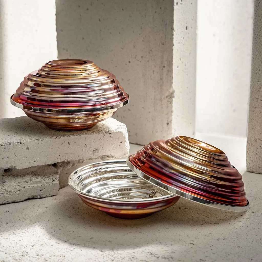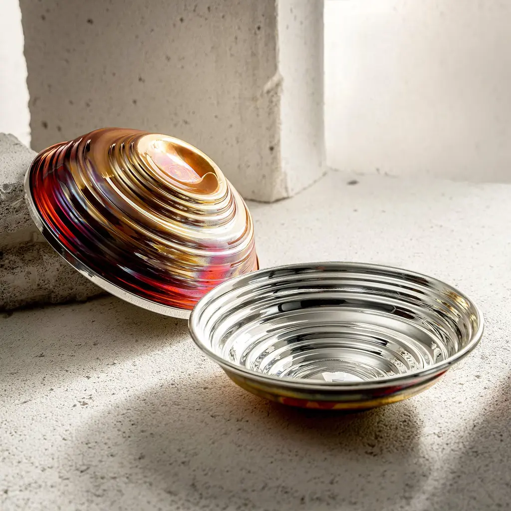 Elevate your home dining experience with our Serrated Full Silver Coated Copper Bowl Set, a beautiful combination of functionality and artistry. This exclusive set includes two 500 ml bowls - a base and a lid - each crafted from solid copper and finished with a shiny silver mirror finish. Designed and handcrafted by skilled artisans, these bowls offer both beauty and versatility, serving as perfect vessels for your culinary creations or as stunning decorative pieces that add a unique shine to any room.