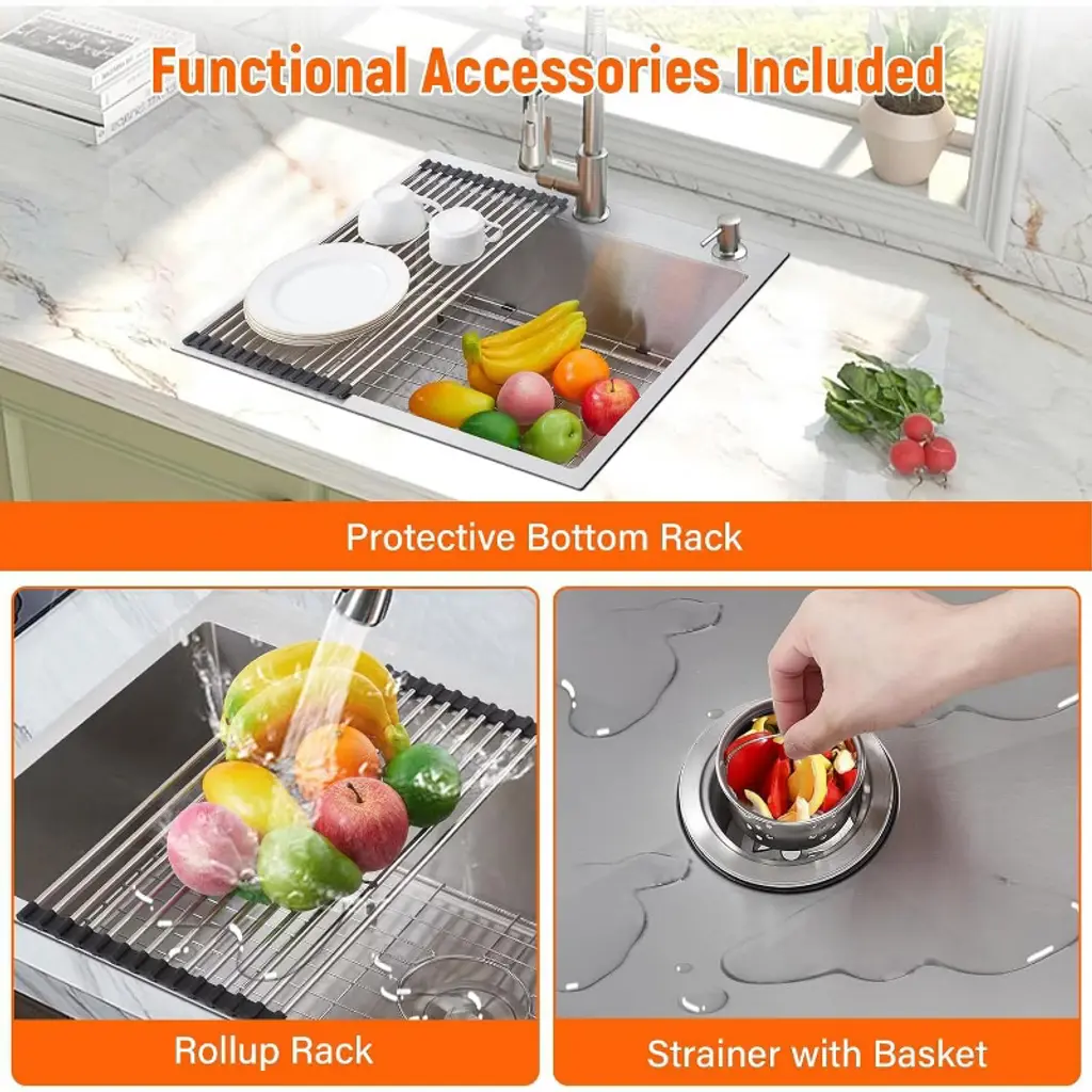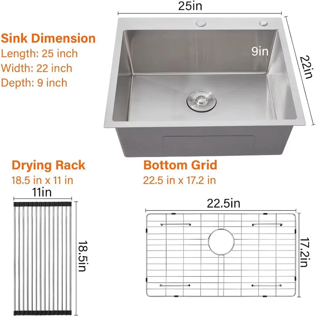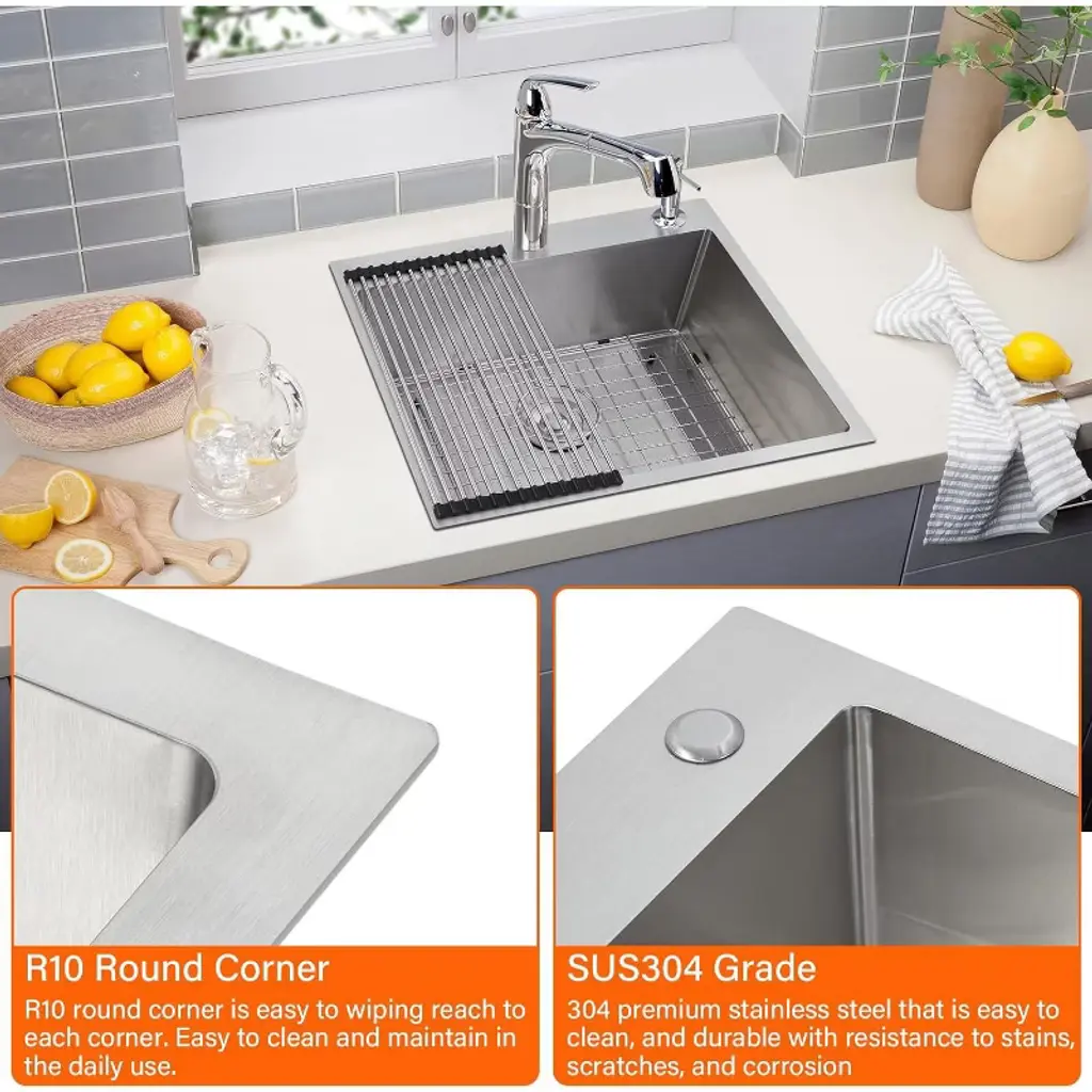 Coucheta 25"x22" Drop-in Kitchen Sink, Topmount Single Bowl With Accessories - For Indoor & Outdoor Use
